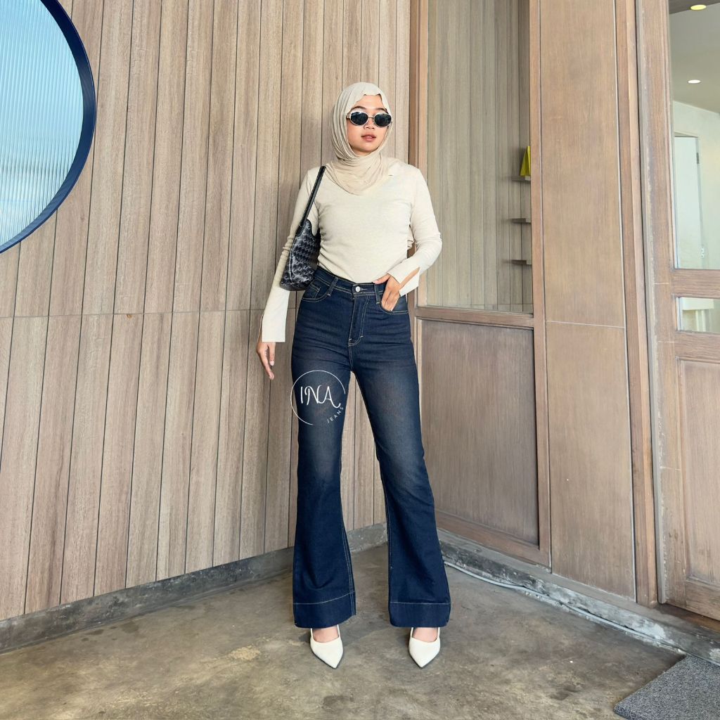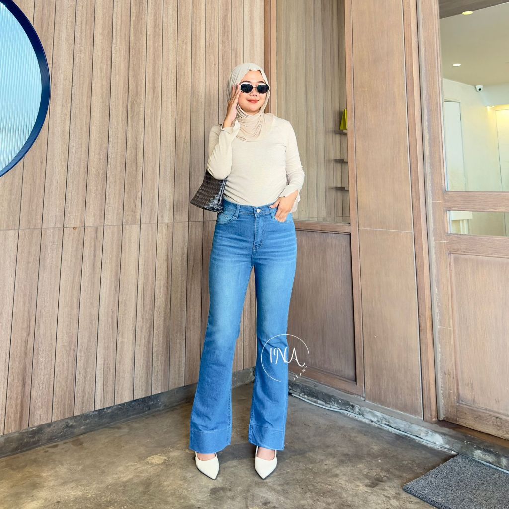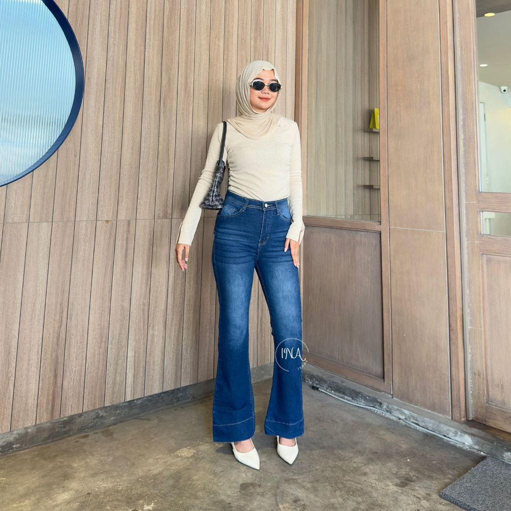 Ina jeans - Jennie Cutbray Jeans Highwaist Women's Stretch Wide Fold Jeans Vintage Korean Style