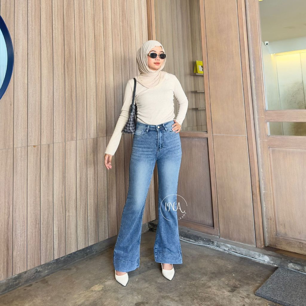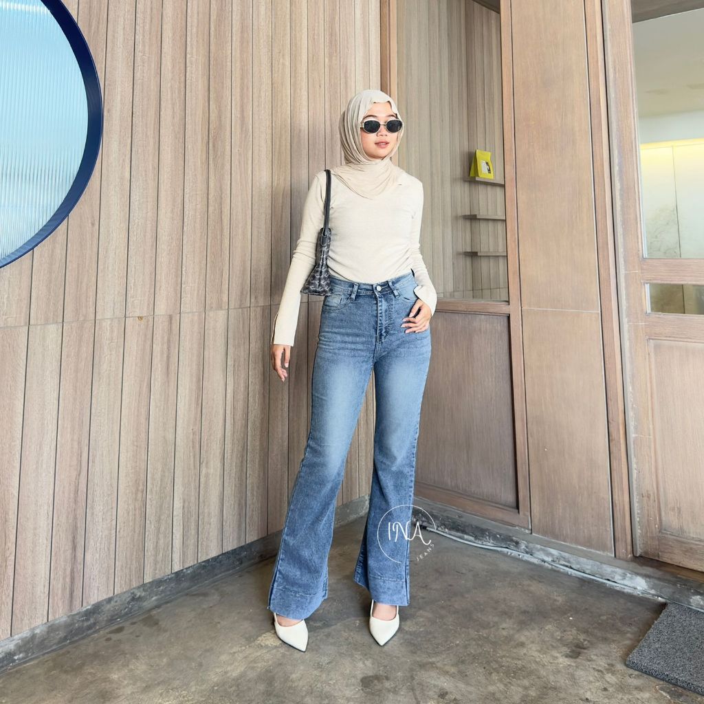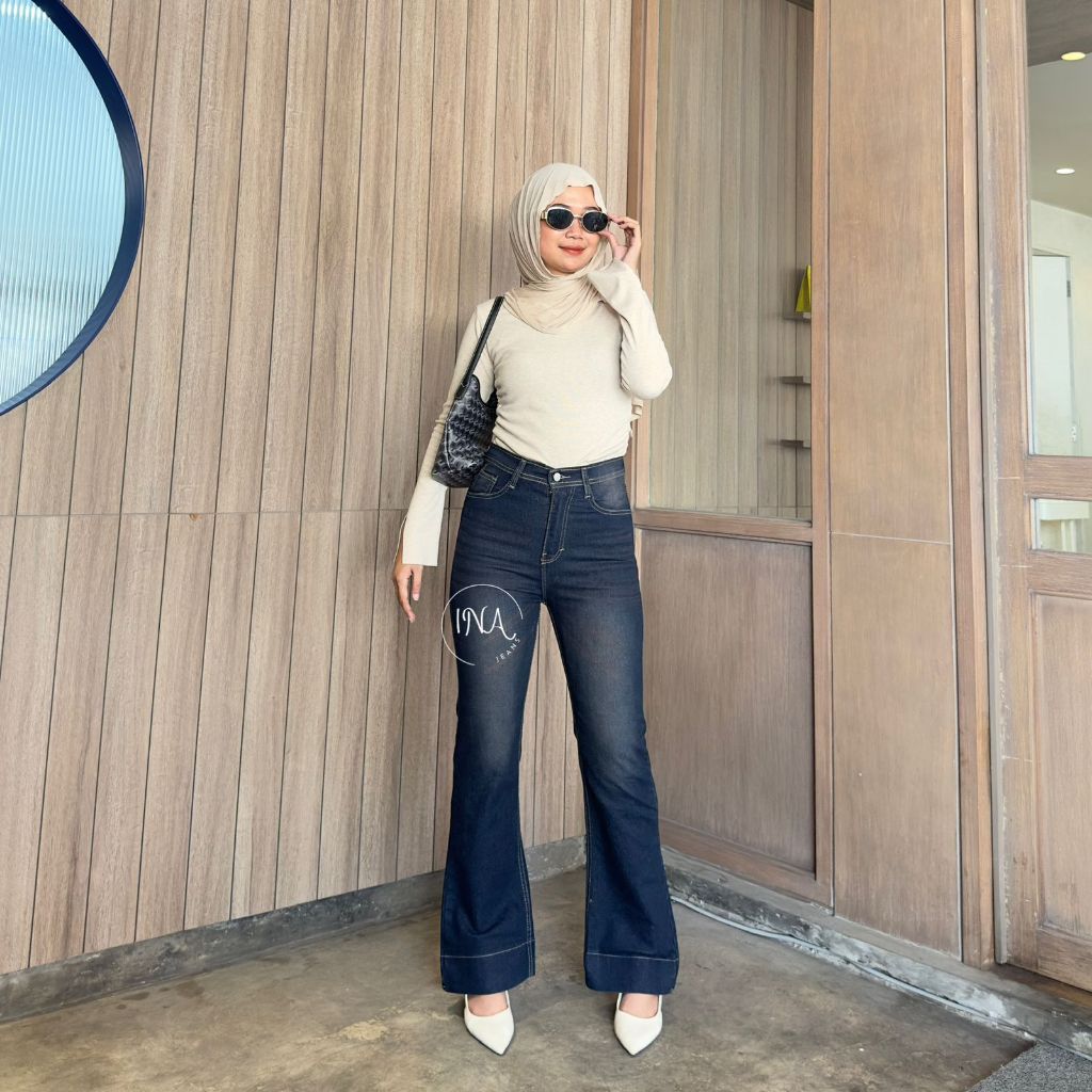 Ina jeans - Jennie Cutbray Jeans Highwaist Women's Stretch Wide Fold Jeans Vintage Korean Style