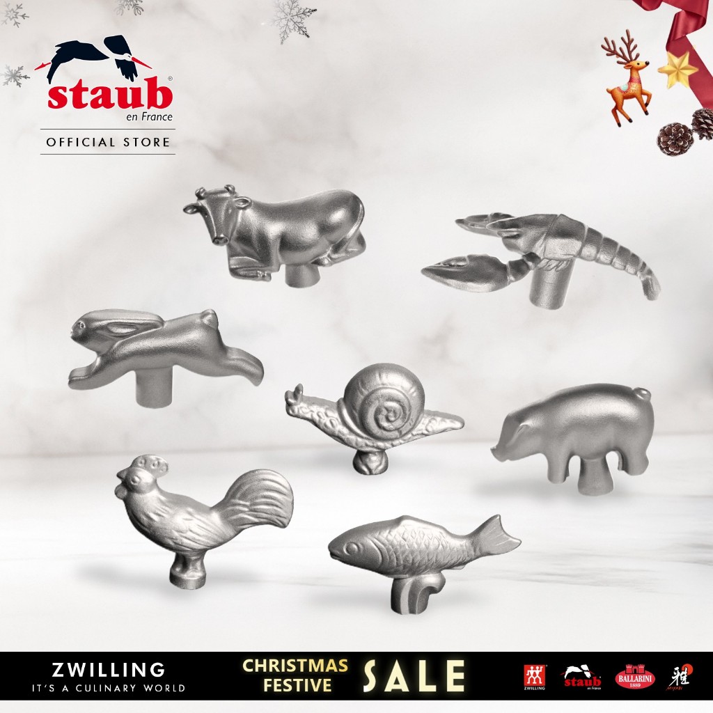 STAUB Stainless Steel Animal Lid Knobs - Lobster/Rooster/Cow/Rabbit/Snail/Fish/Pig