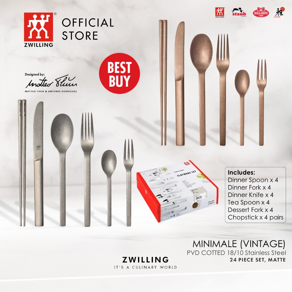 ZWILLING Minimale Vintage PVD Coated 18/10 Stainless Steel Cutlery Set 24 pc Matt