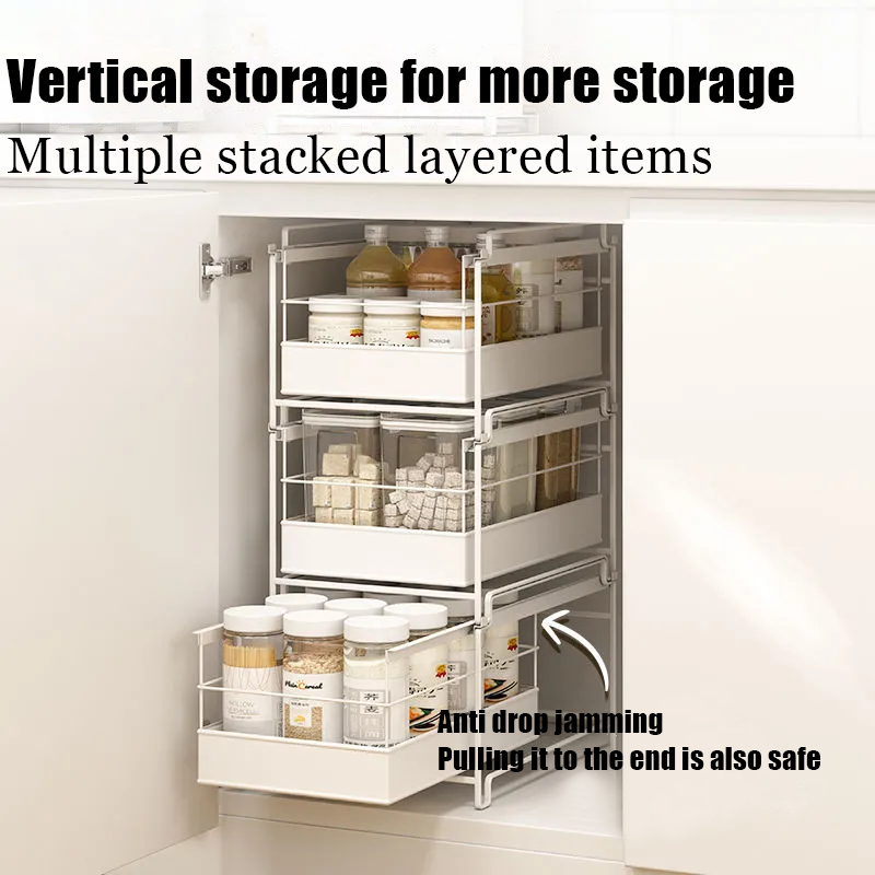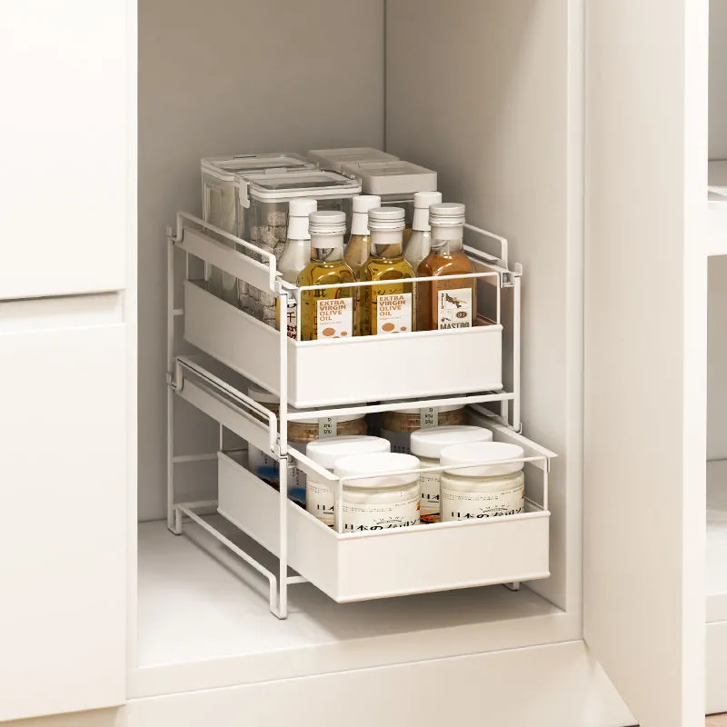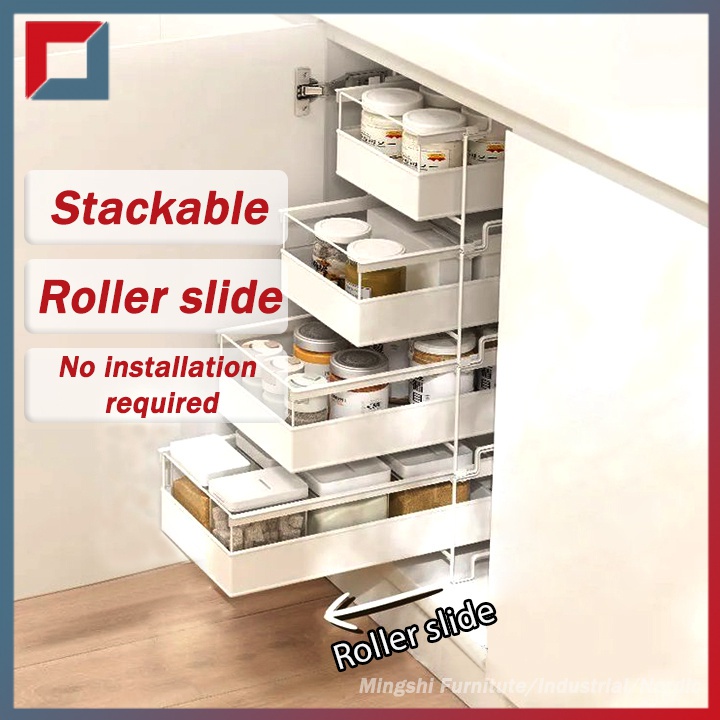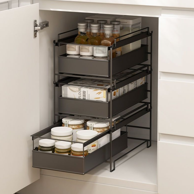 Installation-free pull-out rack kitchen cabinet drawer-type can be superimposed seasoning sundries under sink storage new UR4Y