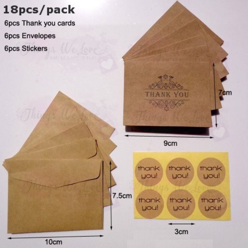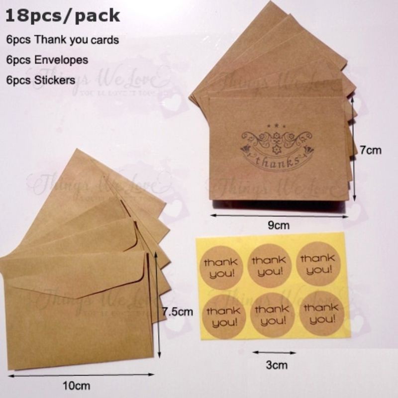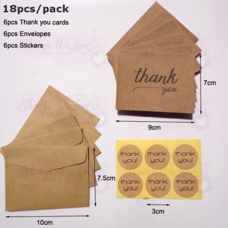 [SG SELLER] [FREE SHIPPING] 6 Sets Mini Thank You Cards Envelope Sticker Greeting Card Mothers Teachers Fathers Day