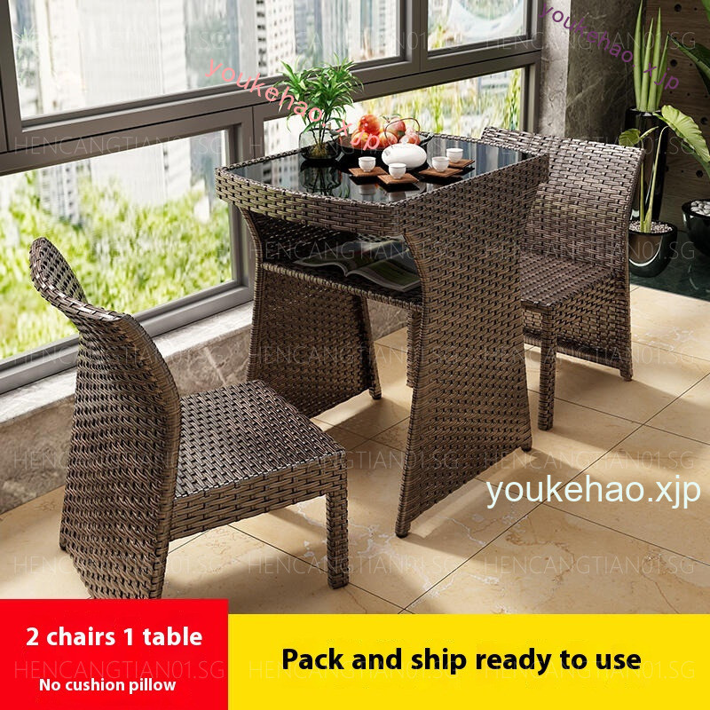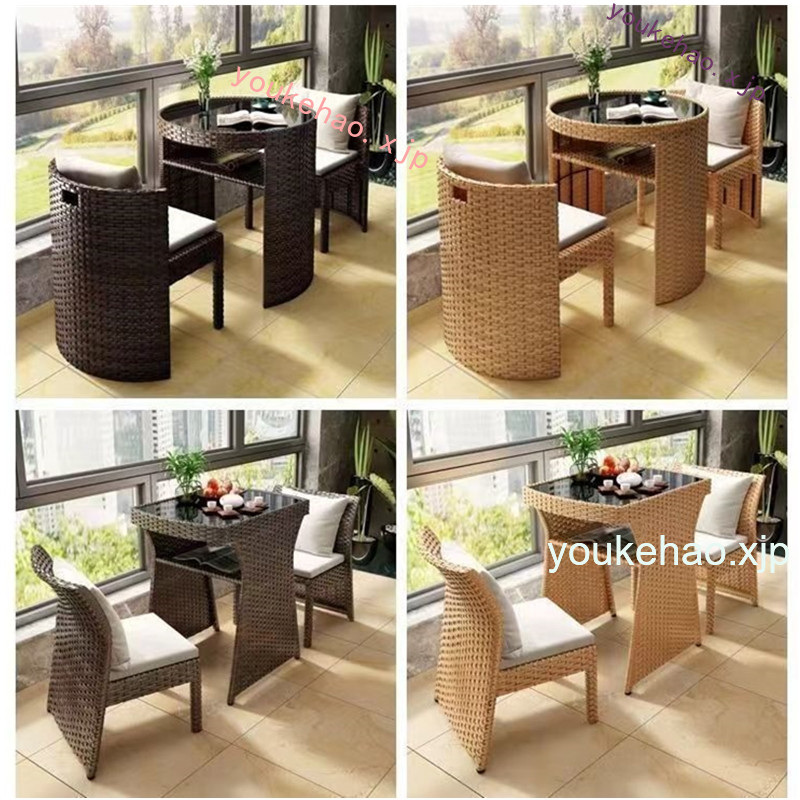 Coffee Combination Balcony Rattan Chair Three Piece Set Space SavingOutdoor Small Table Chair Leisure Coffee Table Stackable Storage