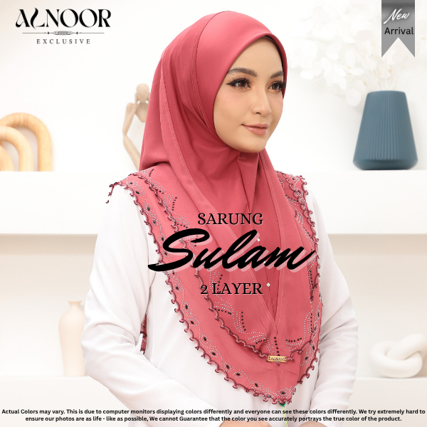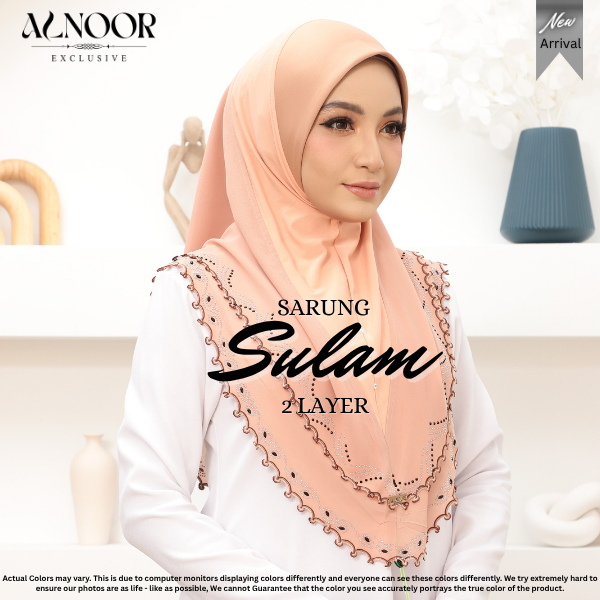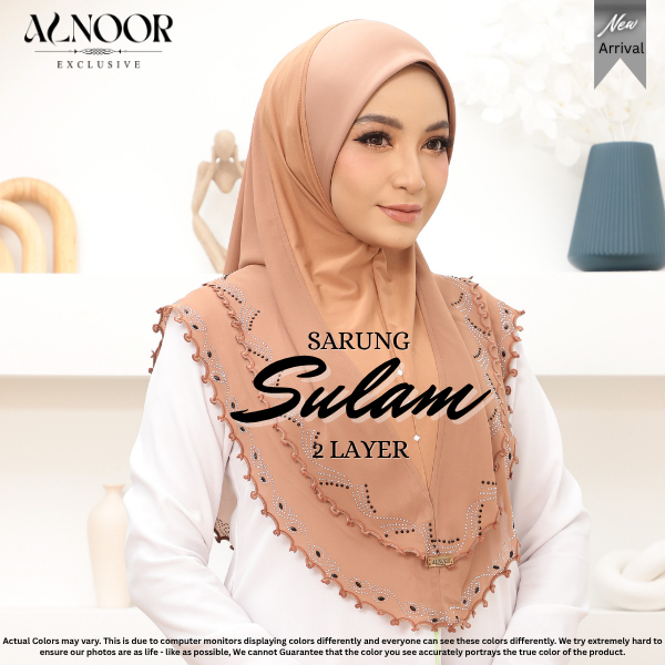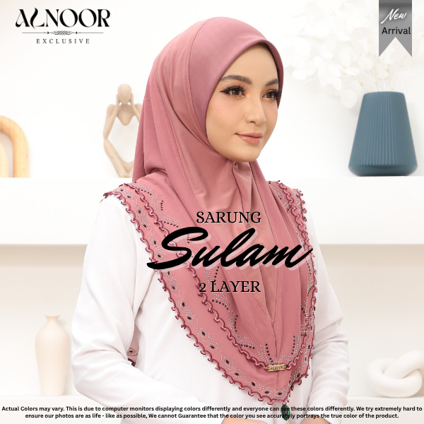 ALNOOR Tudung Sarung Sulam 2 Layer Chiffon – Tudung Labuh Instant Elegan, Ironless & Selesa