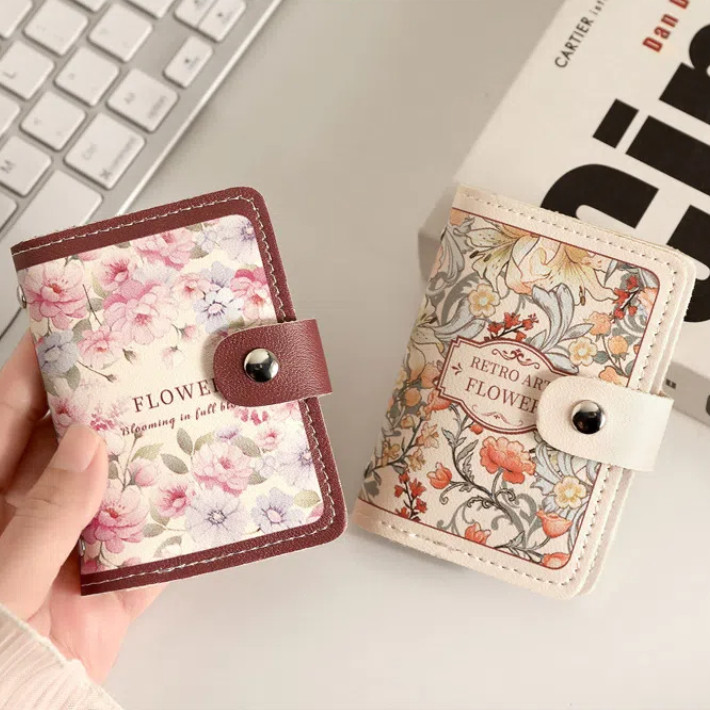 Retro Flower Oil Painting Card Holder Case Women Large Capacity 20 Bits Multi Card ID Driving License Organizer Bank Card Bag
