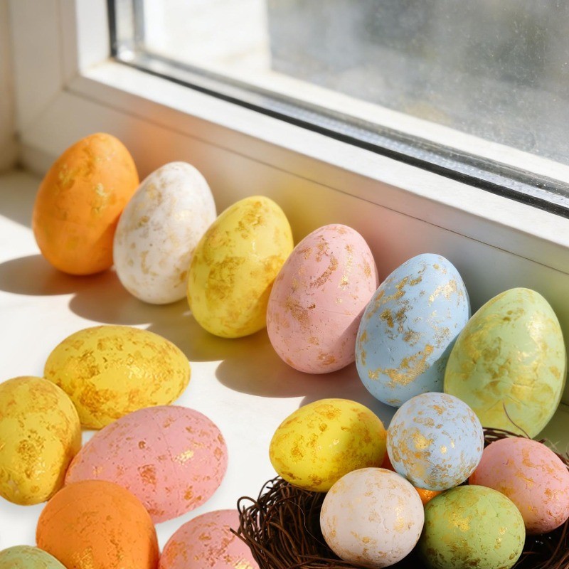 Glitter Finish Easter Eggs - Festival Party Ornaments - Foam Colorful Eggs Set - Multicolor Artificial Bird Egg - Happy Easter Home Decoration - DIY Basket Vase Fillers