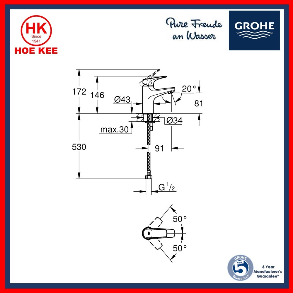 GROHE BauFlow 32851000 Basin Mixer (Smooth Body)