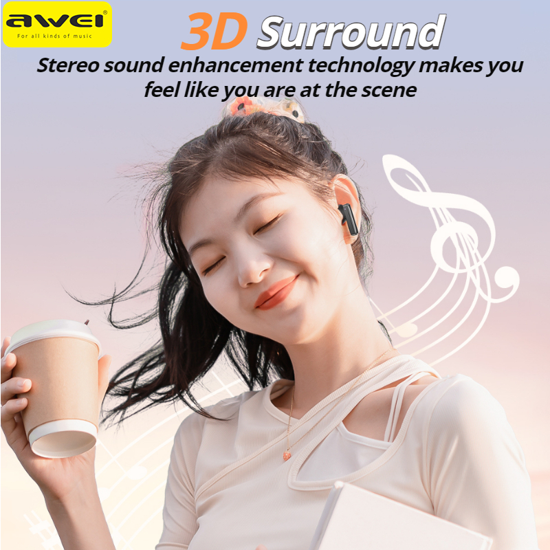 Awei T87 Bluetooth Earphone Wireless Earpiece ENC Call Noise Cancelling Earbuds 0.06s Low Latency Mini Gaming Headset