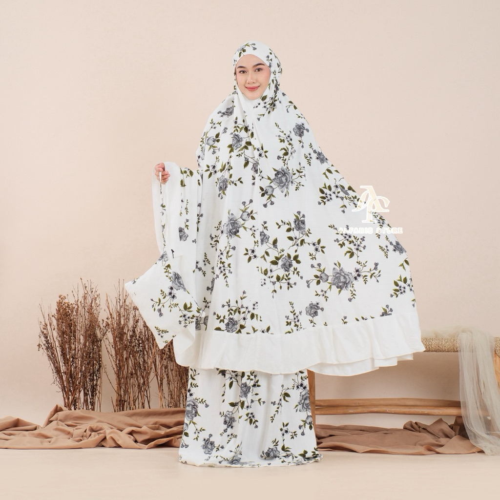 Adibah Rayon Premium Jumbo Rampel Mukena, Thick, Cool, Comfortable, Soft, Long Batik Top and Bottom Set