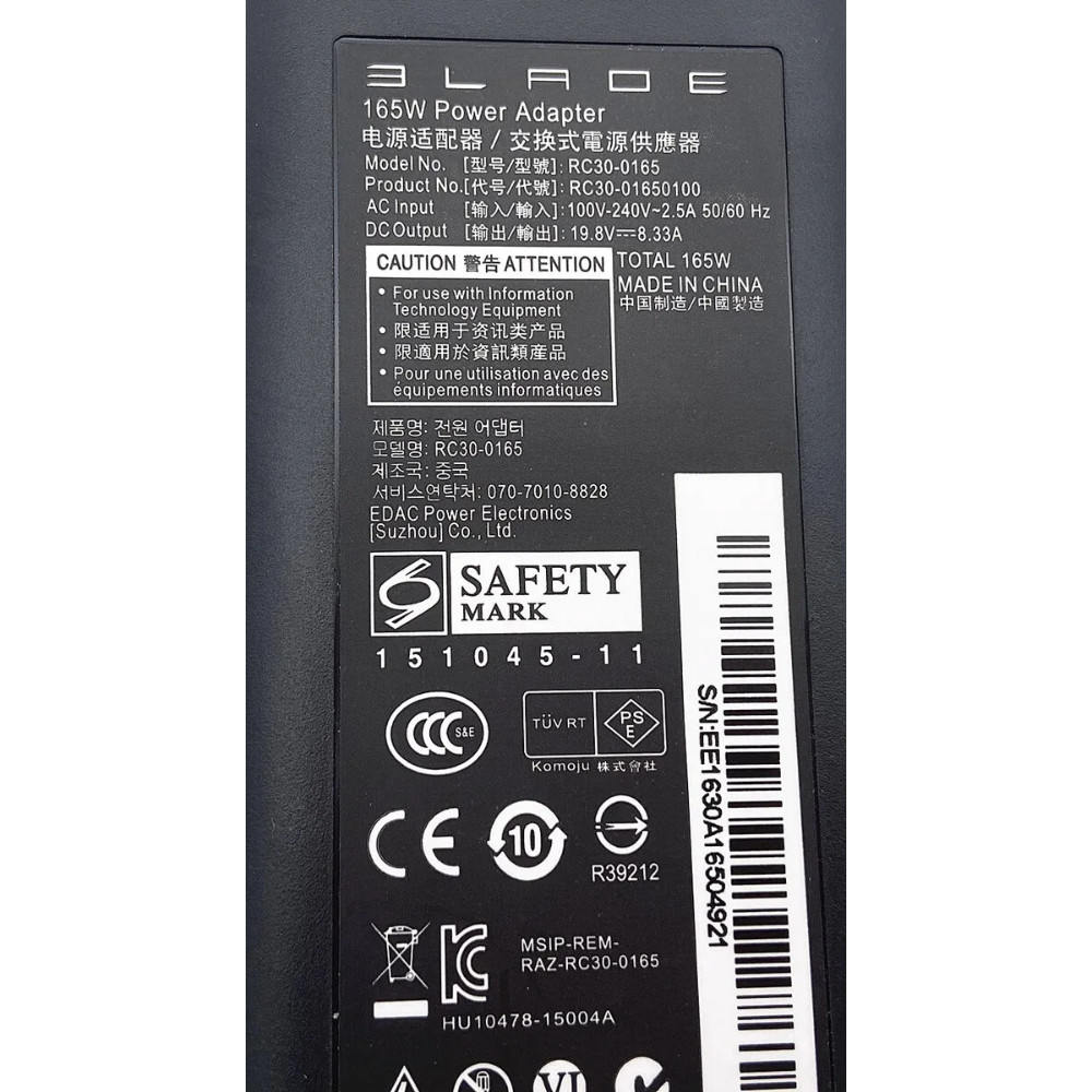 Razer Blade Pro 2017 2015/Blade 14 Spirit Blade 19.8V 8.33A 165W AC Power Charger RC30-0165 Adapter