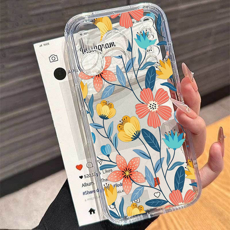 Full Screen Strawberry Colorful Flower Phone Case For Samsung Galaxy S23 S21 FE S20 Note 10 Plus Lite 20 Ultra A12 Transparent Luxury Soft Wallet Trend Brand INS Cute Retro Cover