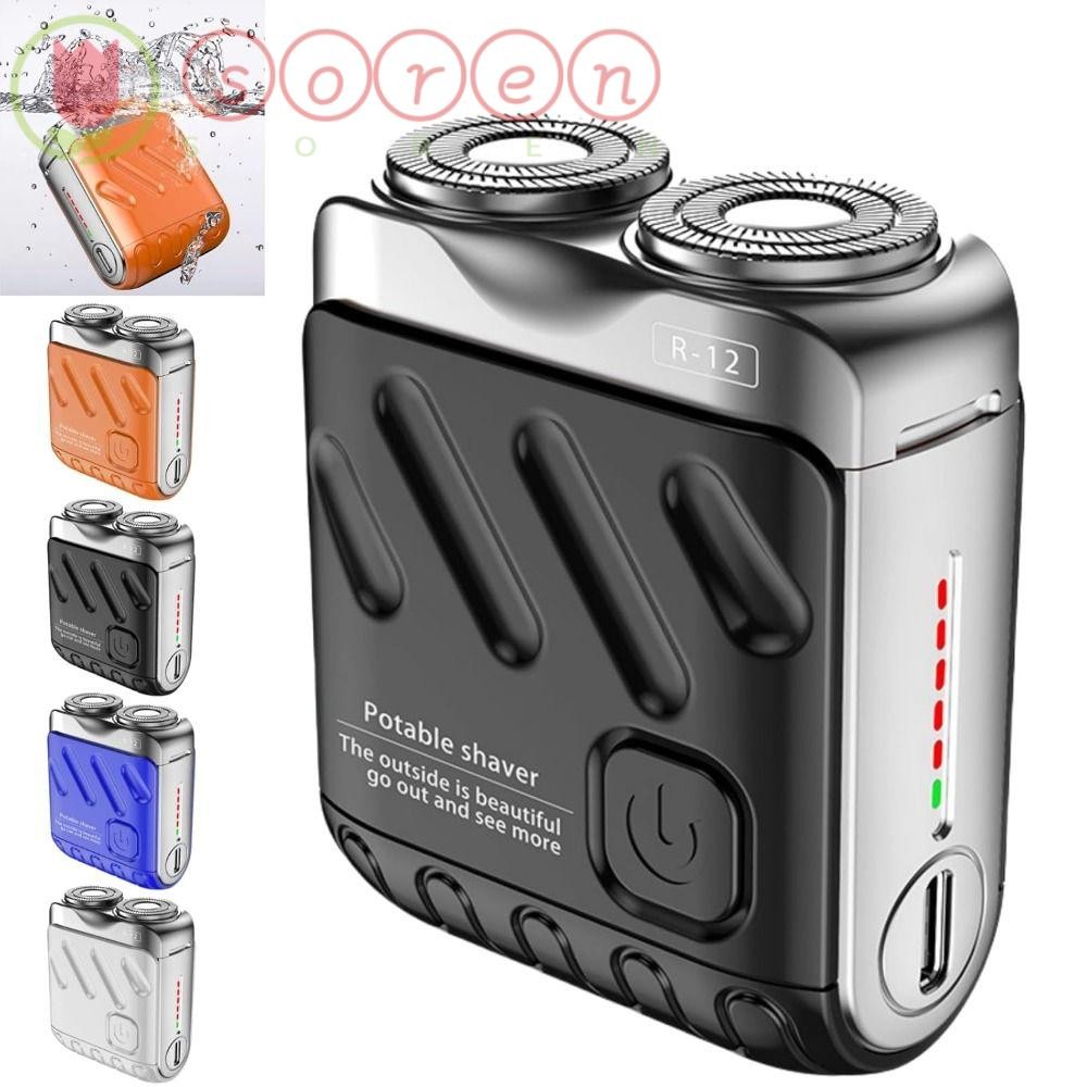 SOREN Pocket Shaver, Mini Traveler Suitcase Design Electric Razor, Portable Waterproof Magnetic Cutter Double-Ring Men's Shaver