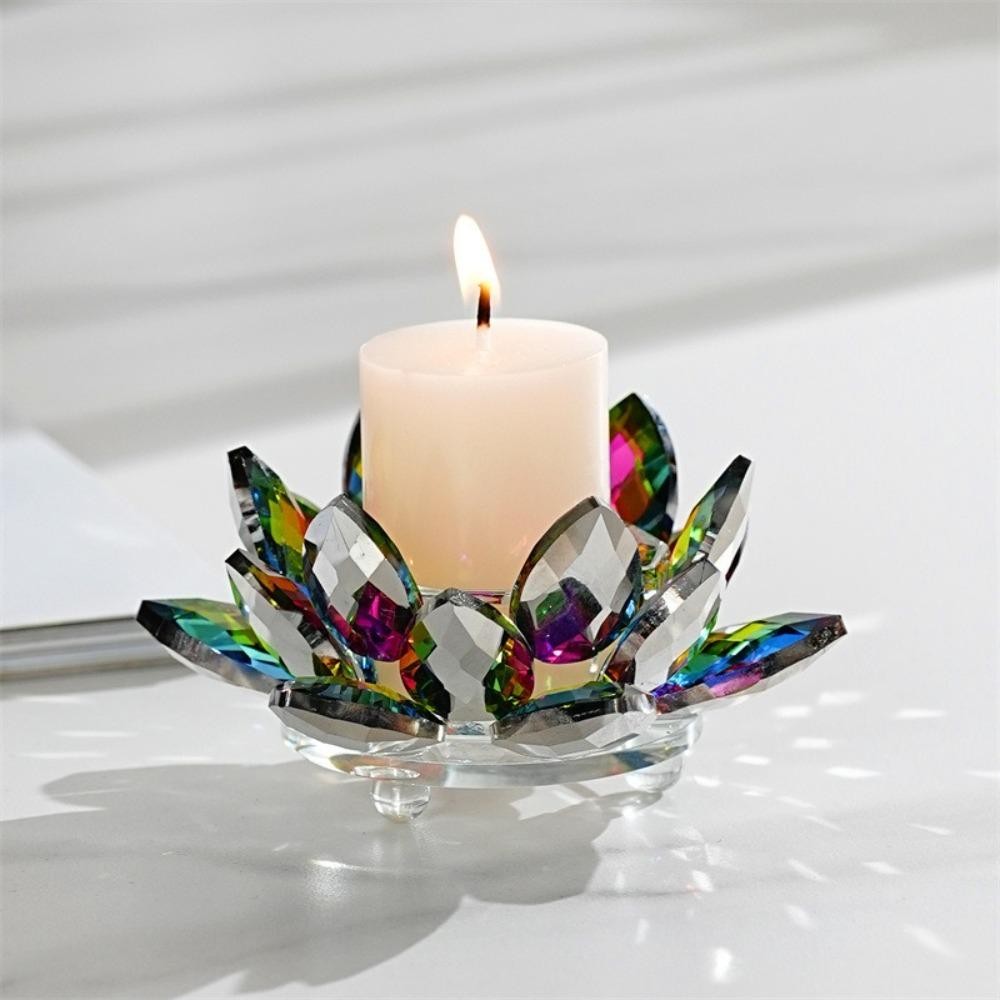 TOPBEAUTY Candle Holder, Glass Crystal Tealight Candlestick, Cute Home Ornament Figurines Lotus Everlasting Lamp Base Party Decor