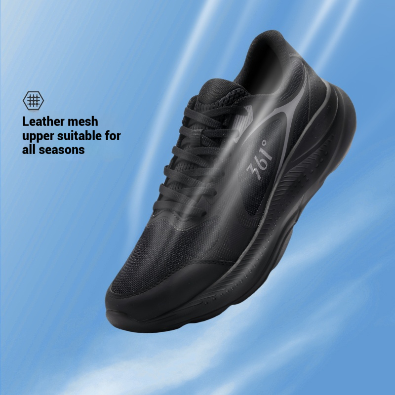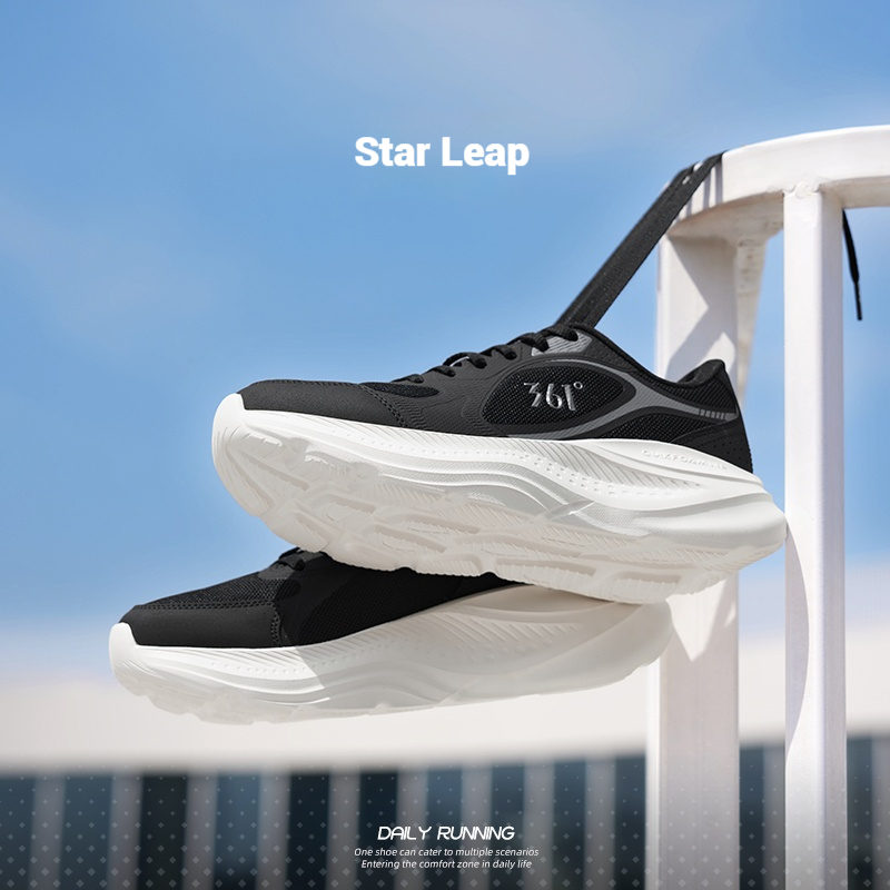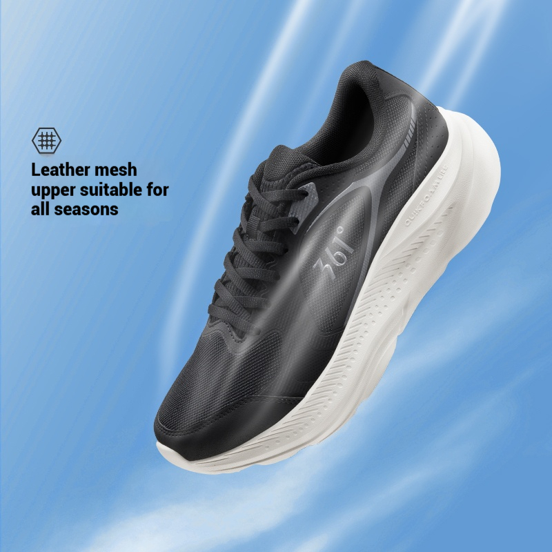 361 Degree Star Leap Men's Thick-soled Sports Shoes Leather Mesh Splicing Breathable Cushioning Running Shoes 672532237