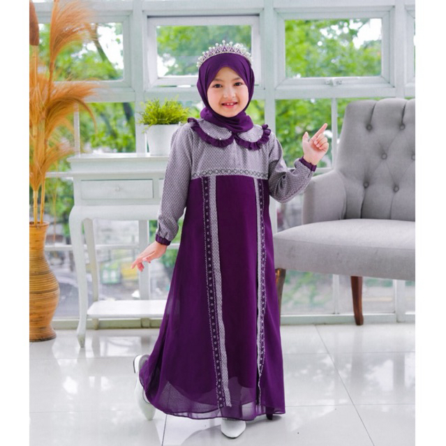 Zifani kids children's gamis khimar set gamis/ for children aged 3-12 years latest Eid children's gamis/