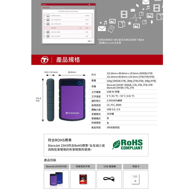 [Cool 3C] Transcend 25H3B 25H3P 25H3 1TB 2T 4T 2TB Mobile Hard Drive External