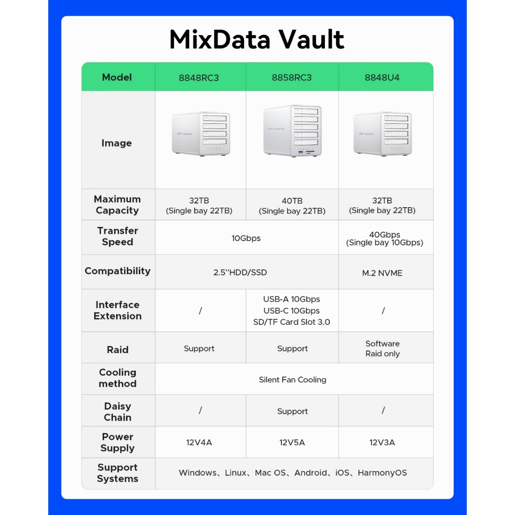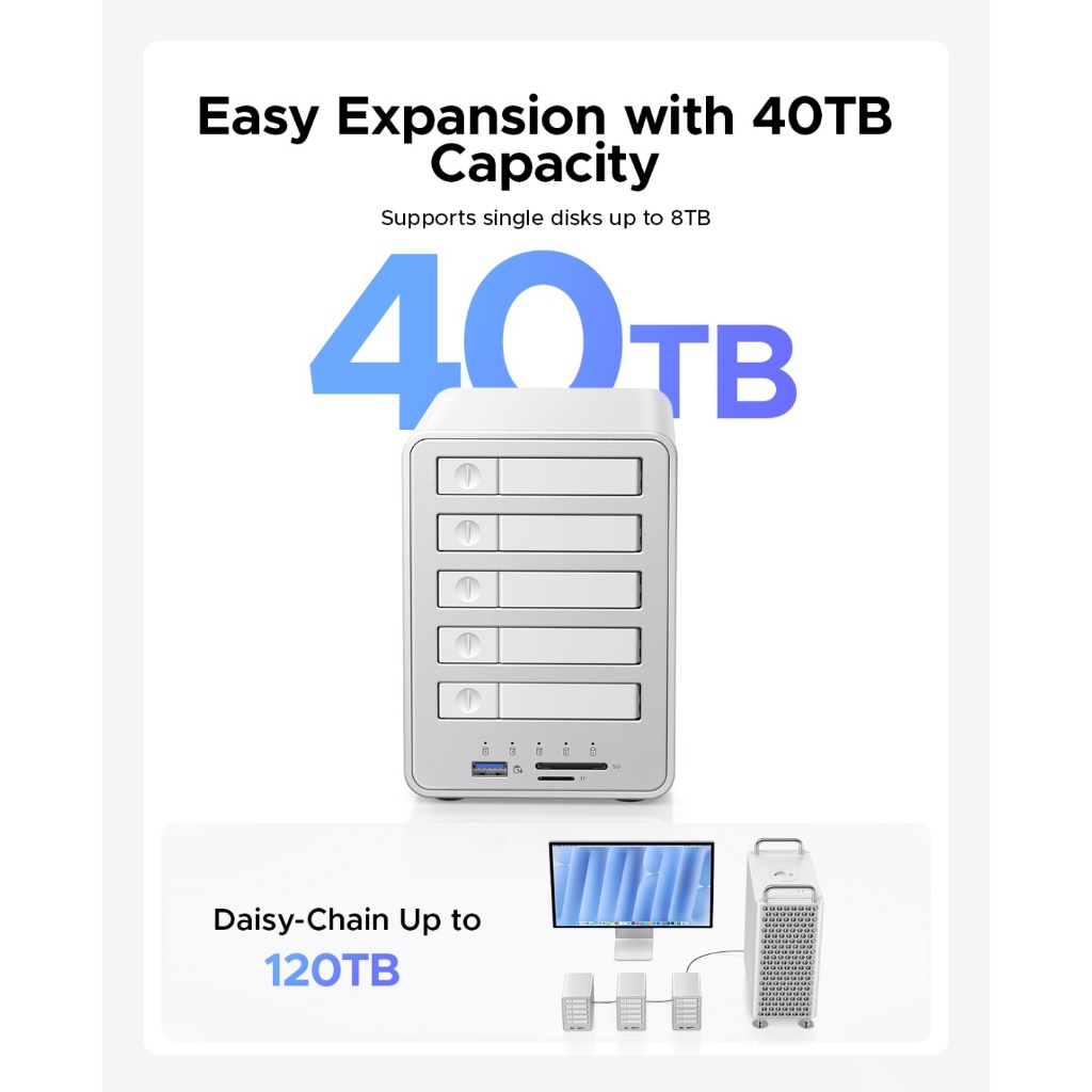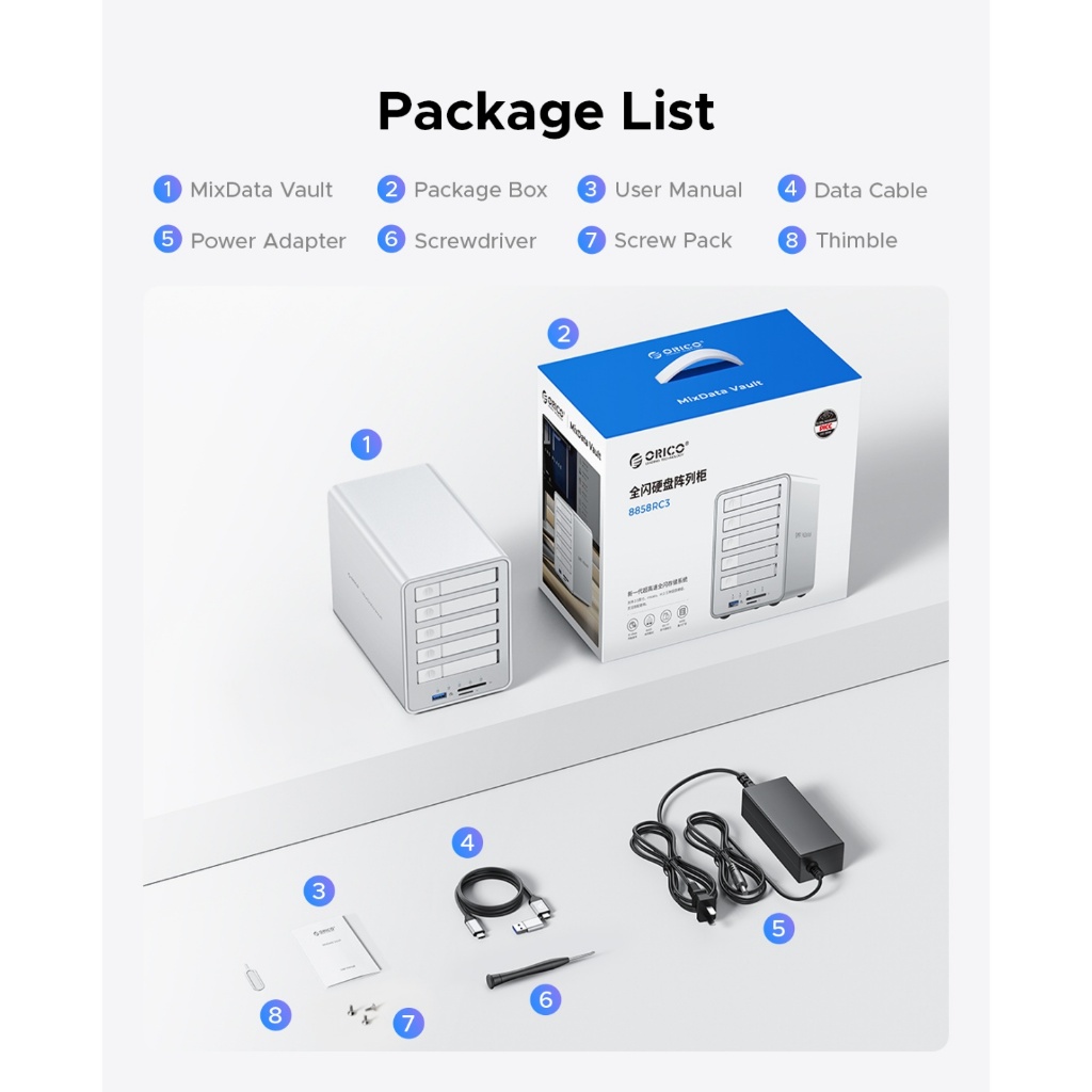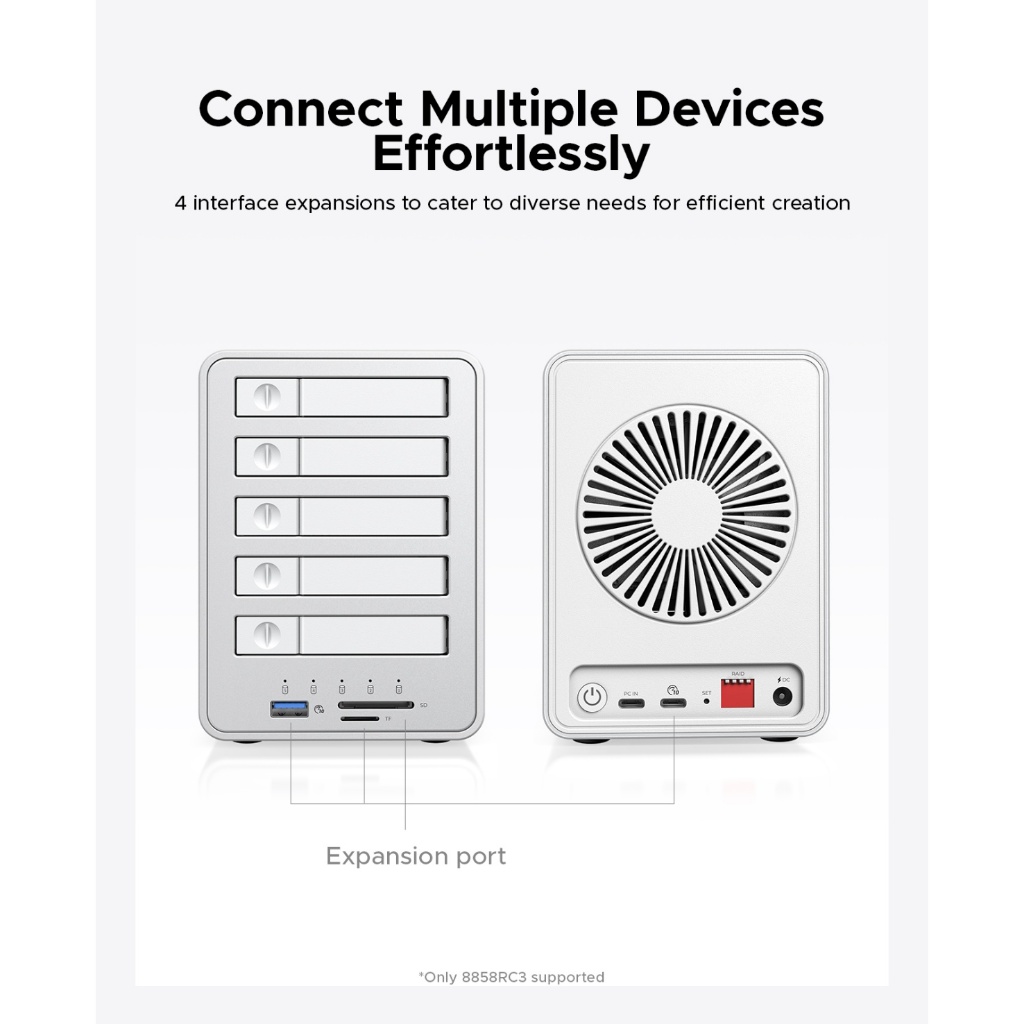 ORICO 5-Bay All-Flash Enclosure, 10GBPS Speed for 2.5-inch HDD/SSD Support up to 40TB, with RAID, Card Reader (8858-RC3)
