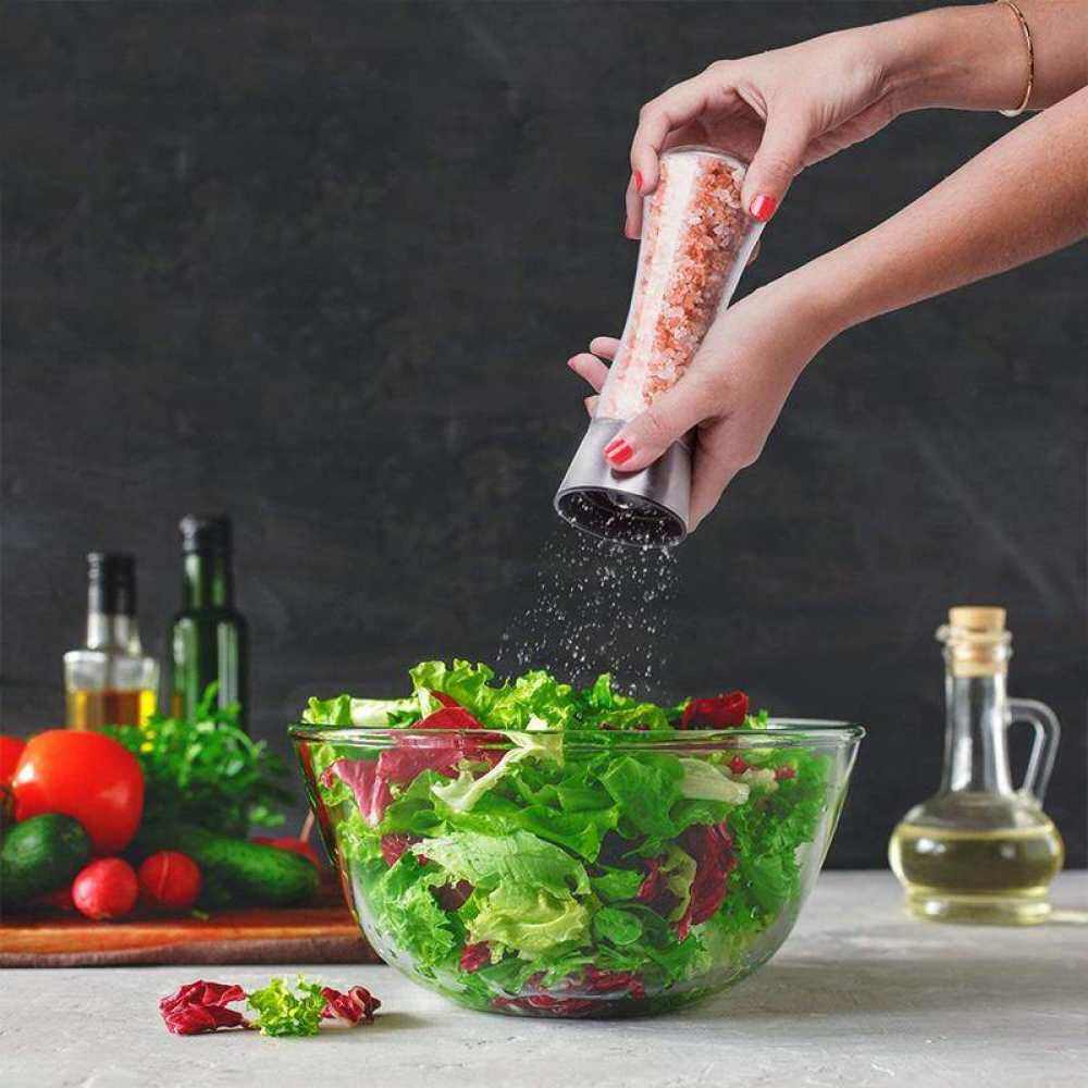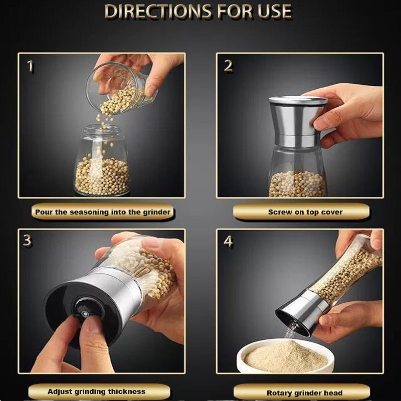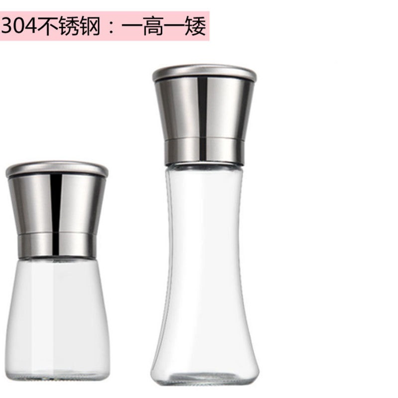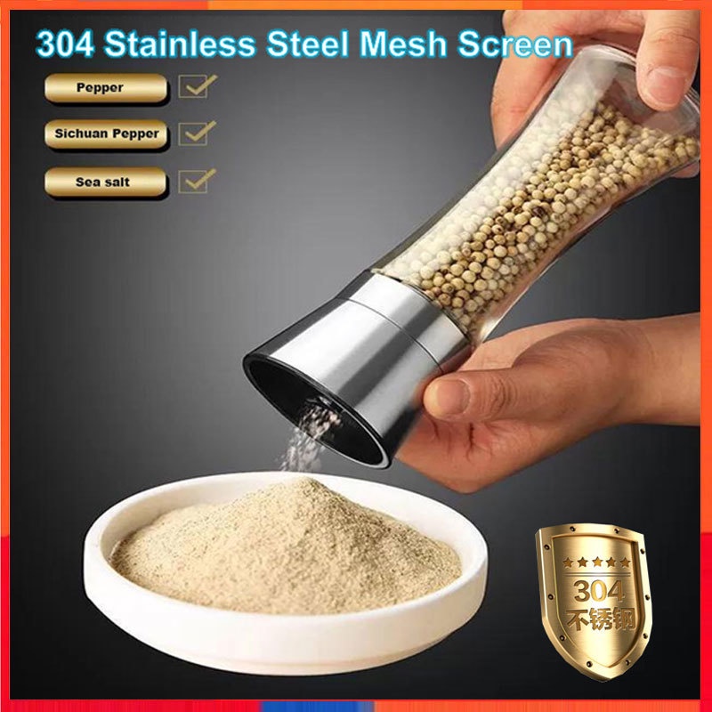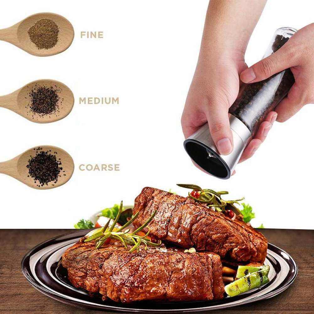 Salt and Pepper Mill Shakers, Stainless Steel Manual Sea Salt Mills, Adjustable Ceramic Pepper Grinder with Glass Body