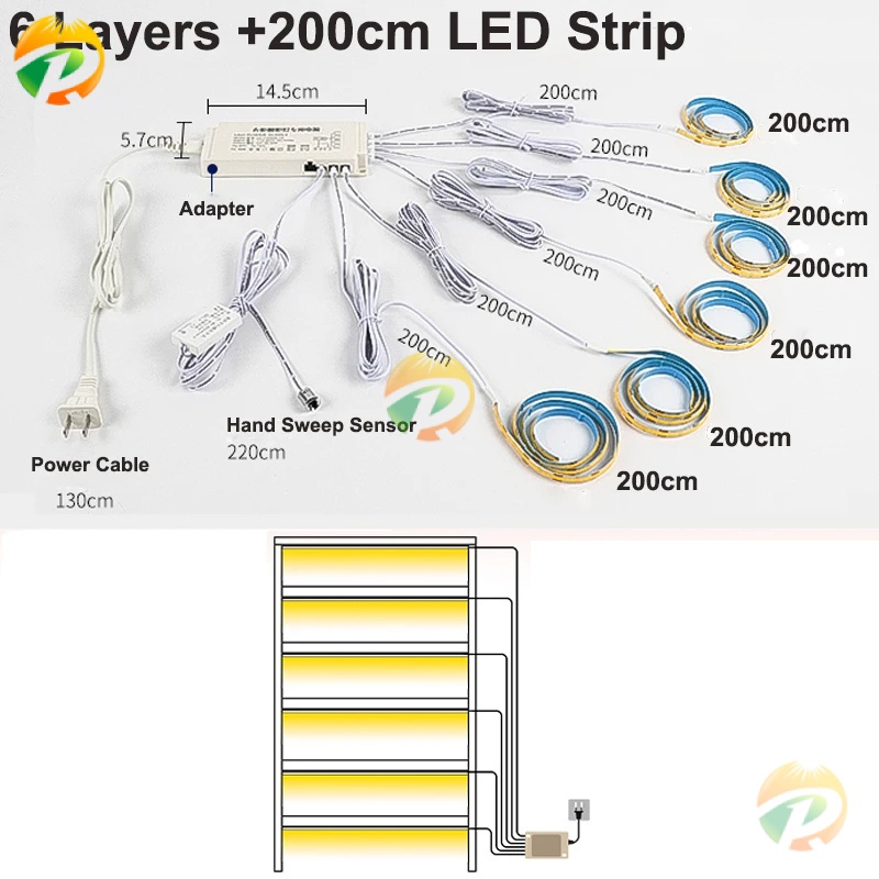 Under Cabinet LED Strip Lights Kitchen Shelf Pantry Showcase Bedroom Wardrobe Closet Backlight Lamp Hand Sweep 3M Sticker