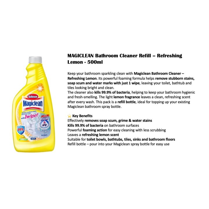 MAGICLEAN Bathroom Cleaner Refill 500Ml / Dissolves Stains Instantly Cleansing