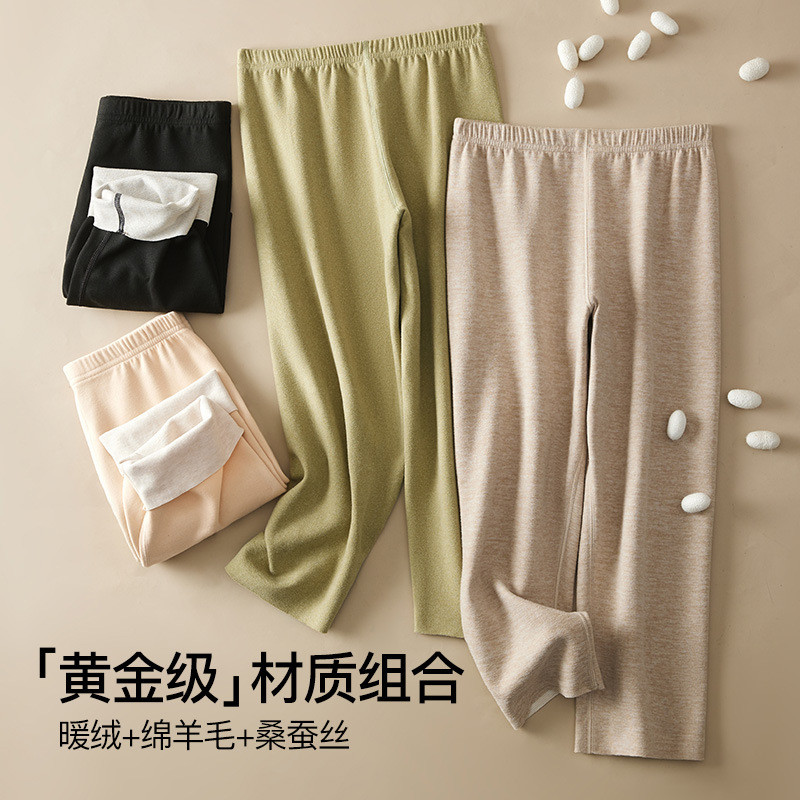 M-3XL For 40-82.5kg Plus Size Cashmere Silk Seven-Point Leggings Mid-High Waist Seamless Double-Sided Fleece Thermal Pants Inner Wear Slim Fit Long Johns Autumn Winter