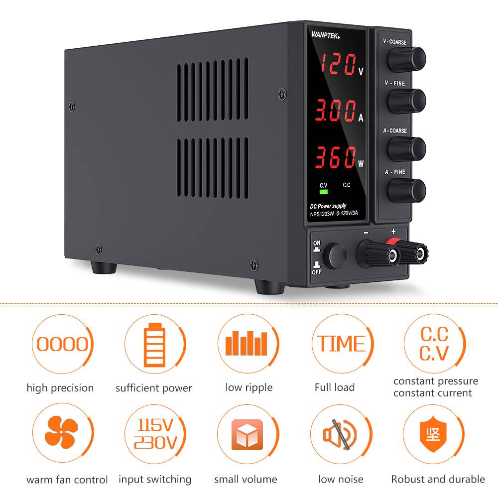 Adjustable Dc Power Supply NPS1203W Dual Digital LED Display Laboratory Power Supply Regulator 120V 3A Bench Source Power