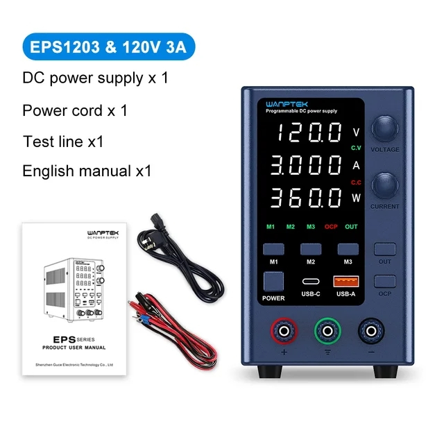 Wanptek Adjustable DC Power Supply 32V 10A, Switching Power Supply with Storage Memory USB/Tape-C Dual Interface Fast Charging