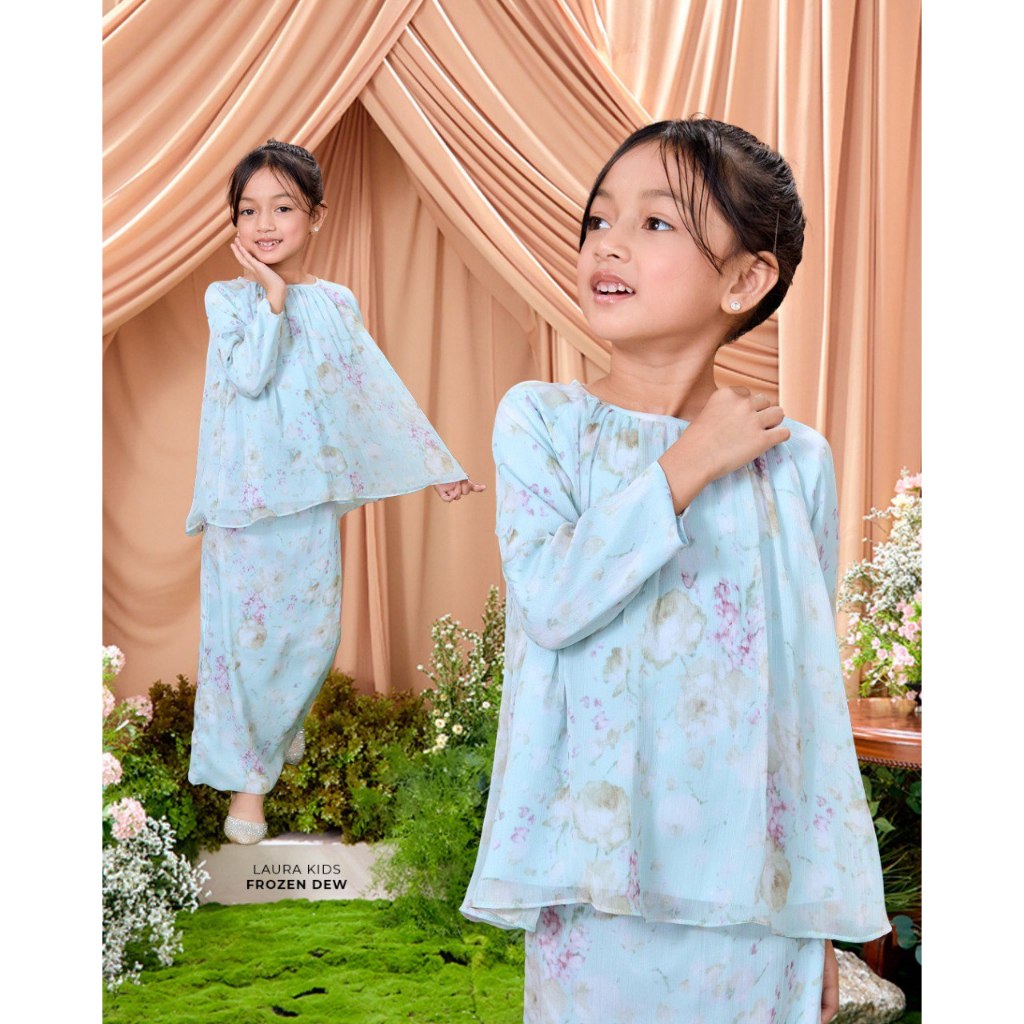 DLEQA Baju Kurung Laura Kids Design Mini Kurung Material Crinkle Chiffon Fully Lining Corak Bunga Cantik