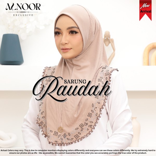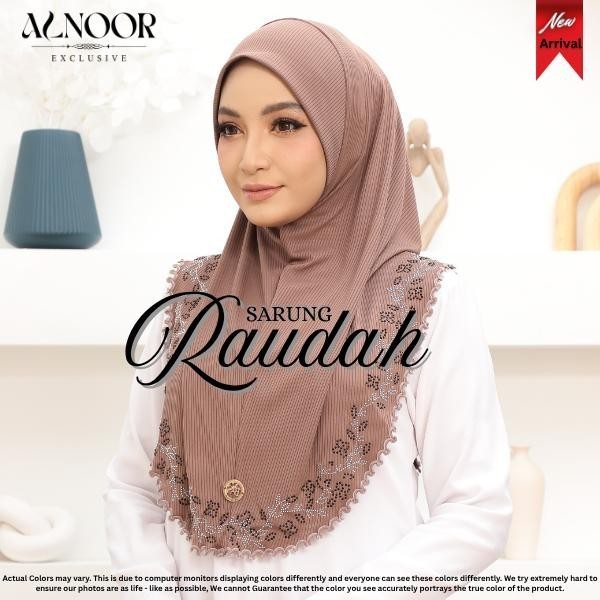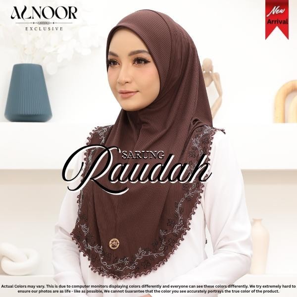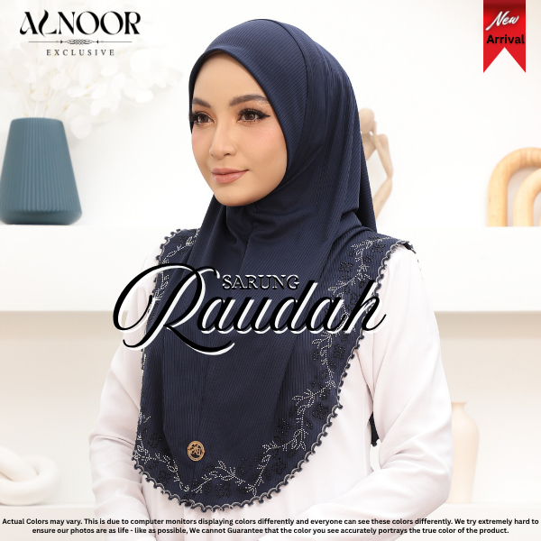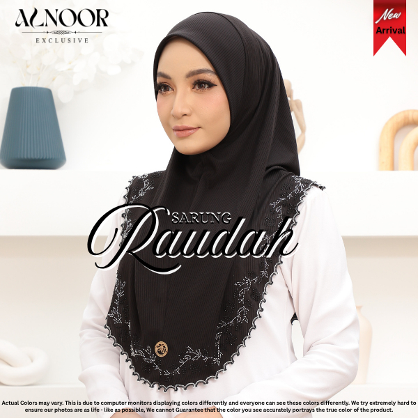 Alnoor Tudung Sarung Raudah Cotton Ribbed Sulam Crosia Labuh Awning Soft Ironless