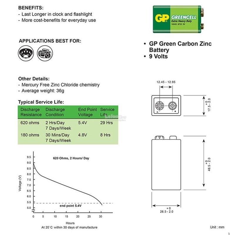 GP Battery / 9V Battery / GP Greencell Extra Heavy Duty Battery