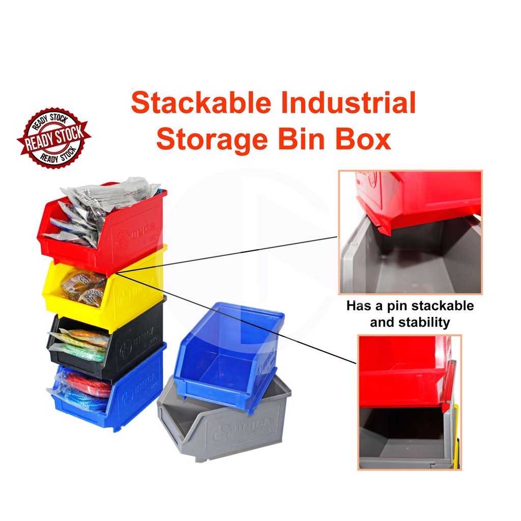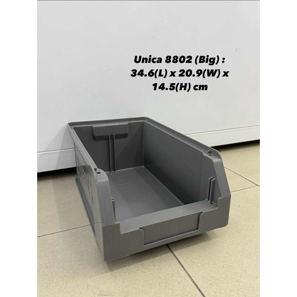 Unica Wall-Mounted Front-Vent Stackable Industrial Container Box Heavy Duty Hardware Spare Parts Storage Bin Tray Rack