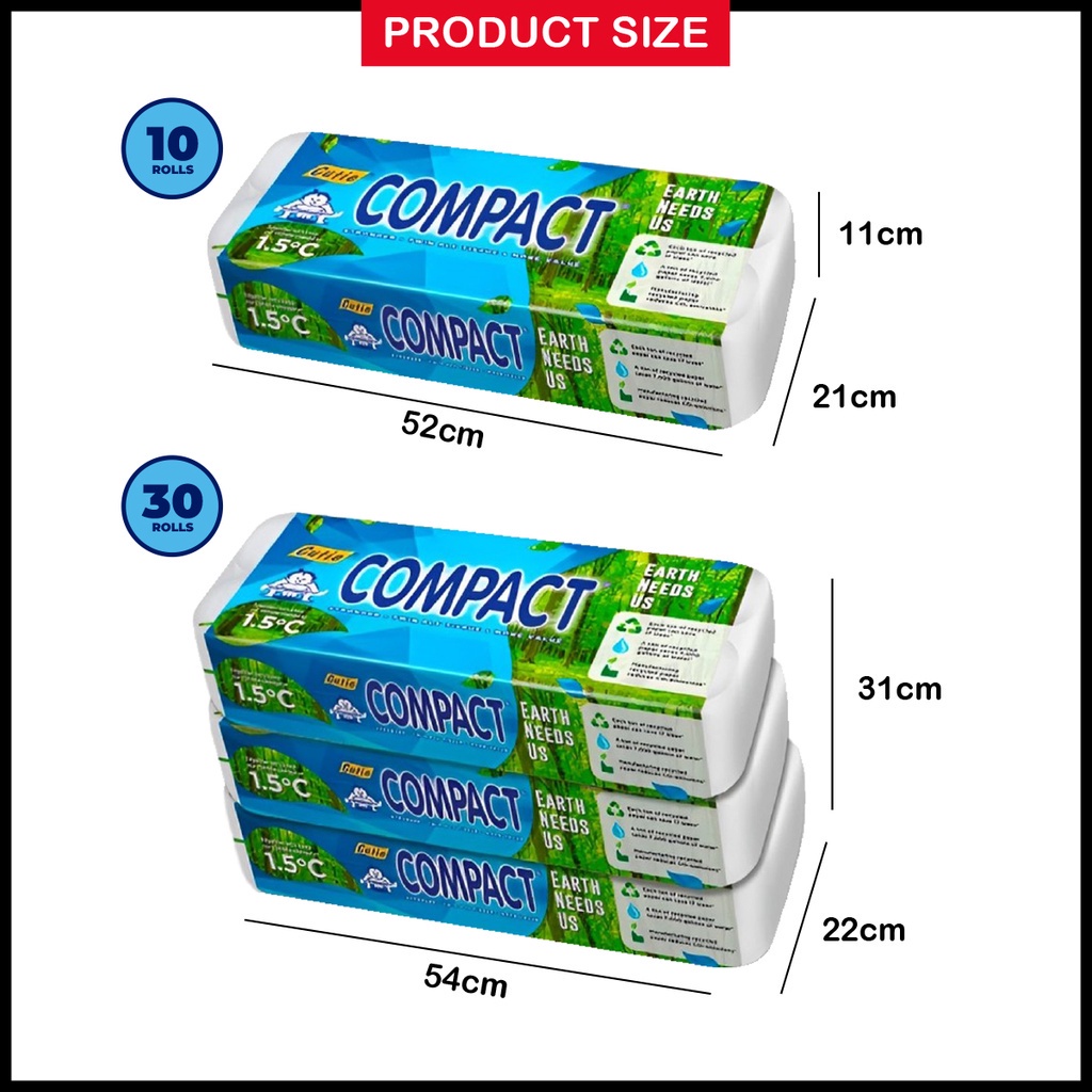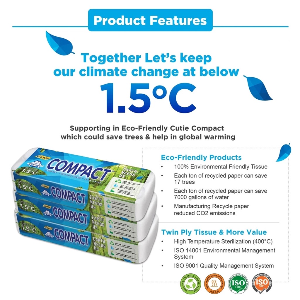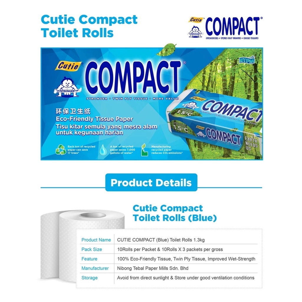 Cutie Compact Toilet Tissue 2 Ply (10/30 Rolls) Tisu Tandas Gulung Recycled Paper Strong L218