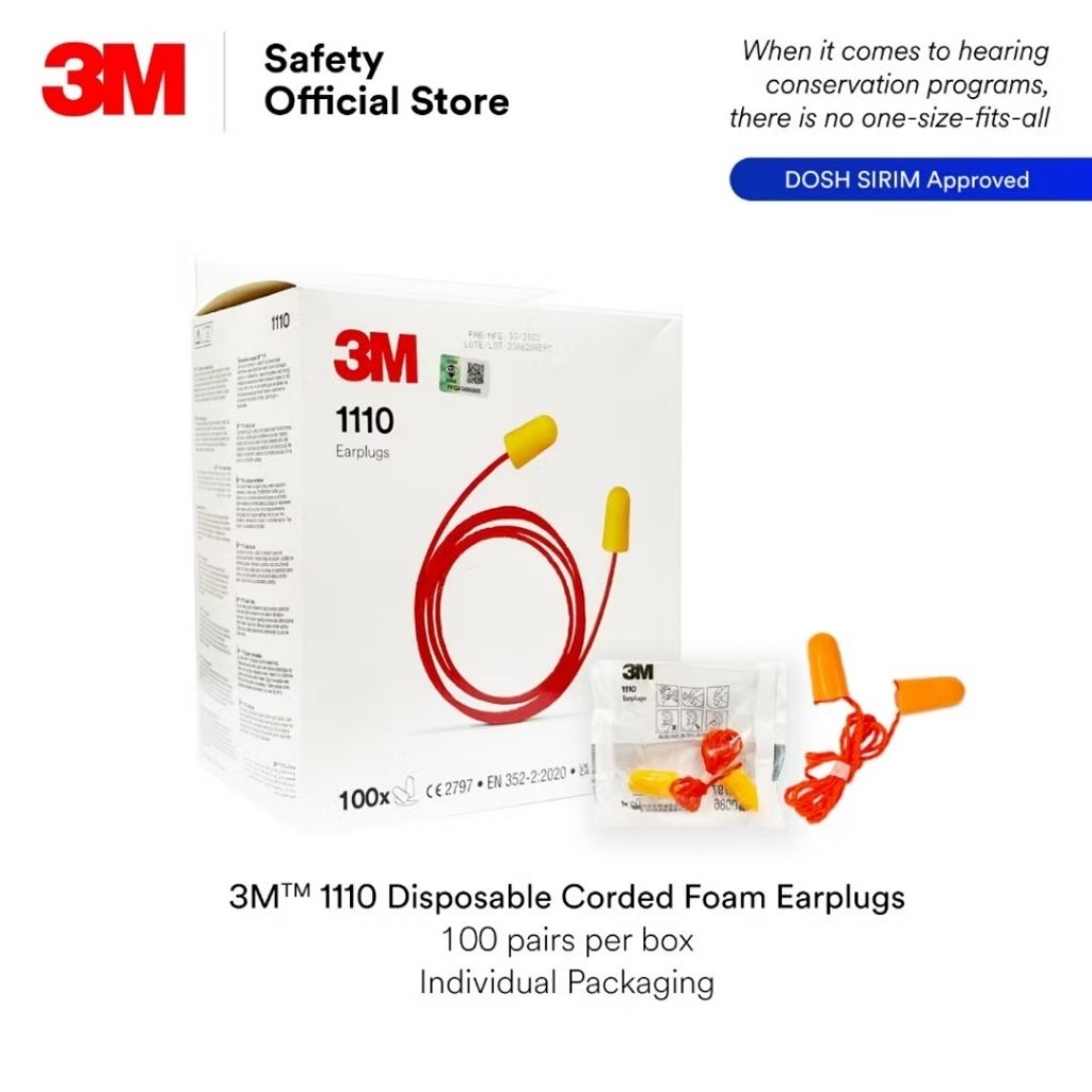 3M 1110 FOAM EAR PLUG CORDED EARPLUGS 29DB NOISE REDUCTION RATING l PENUTUP TELINGA l 耳塞