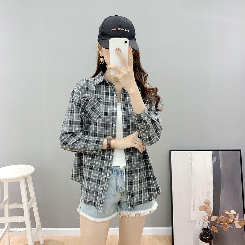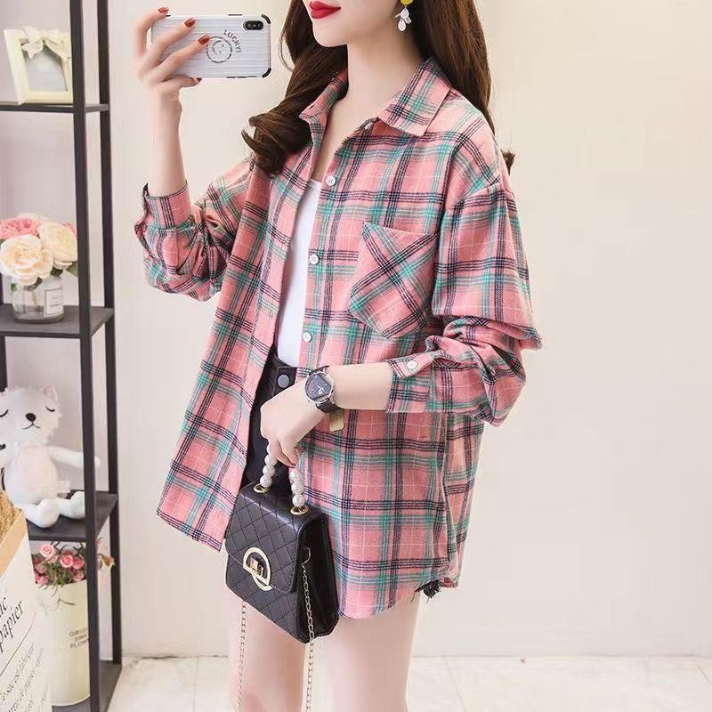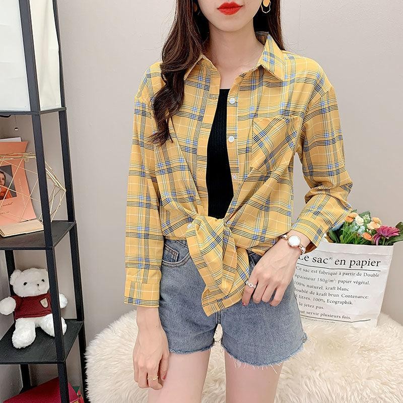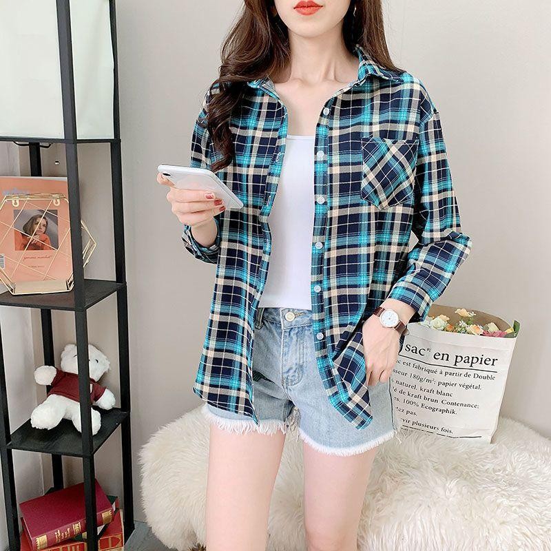 Women's Casual Striped Button-Up Shirt, Commute Plaid Print Long Sleeve Blouse, Checkered Design