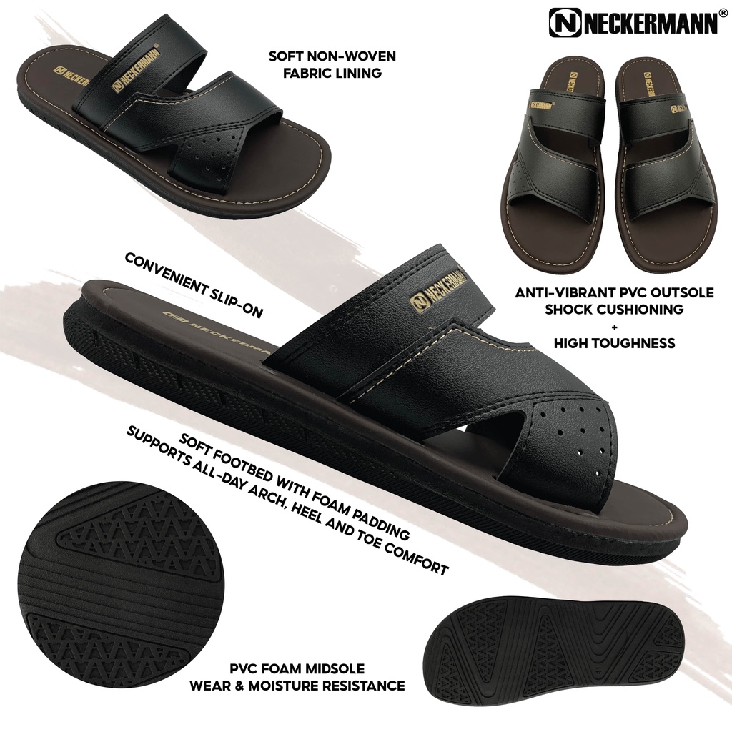 Neckermann Men's Darwin Comfort Slide Sandals/ Sandal Selipar Lelaki Ringan Bernafas AntiSlip- Black