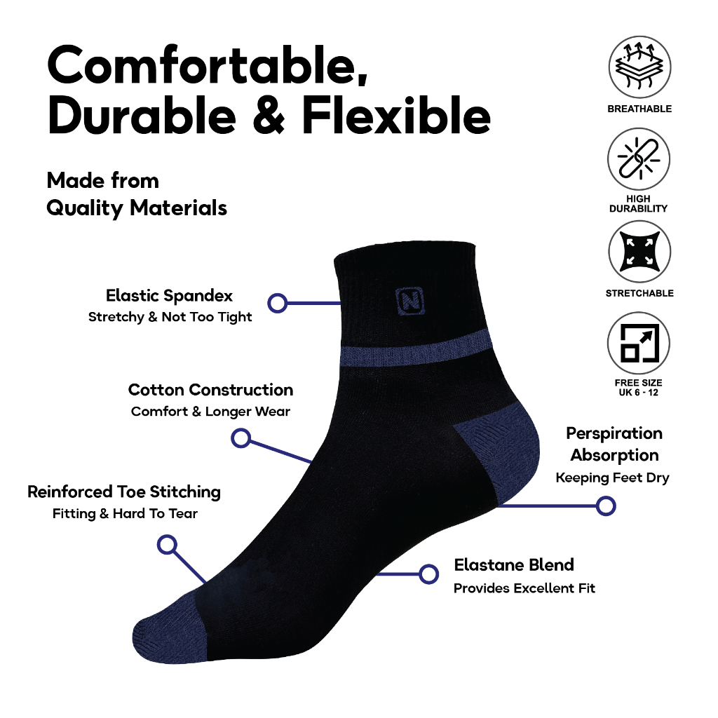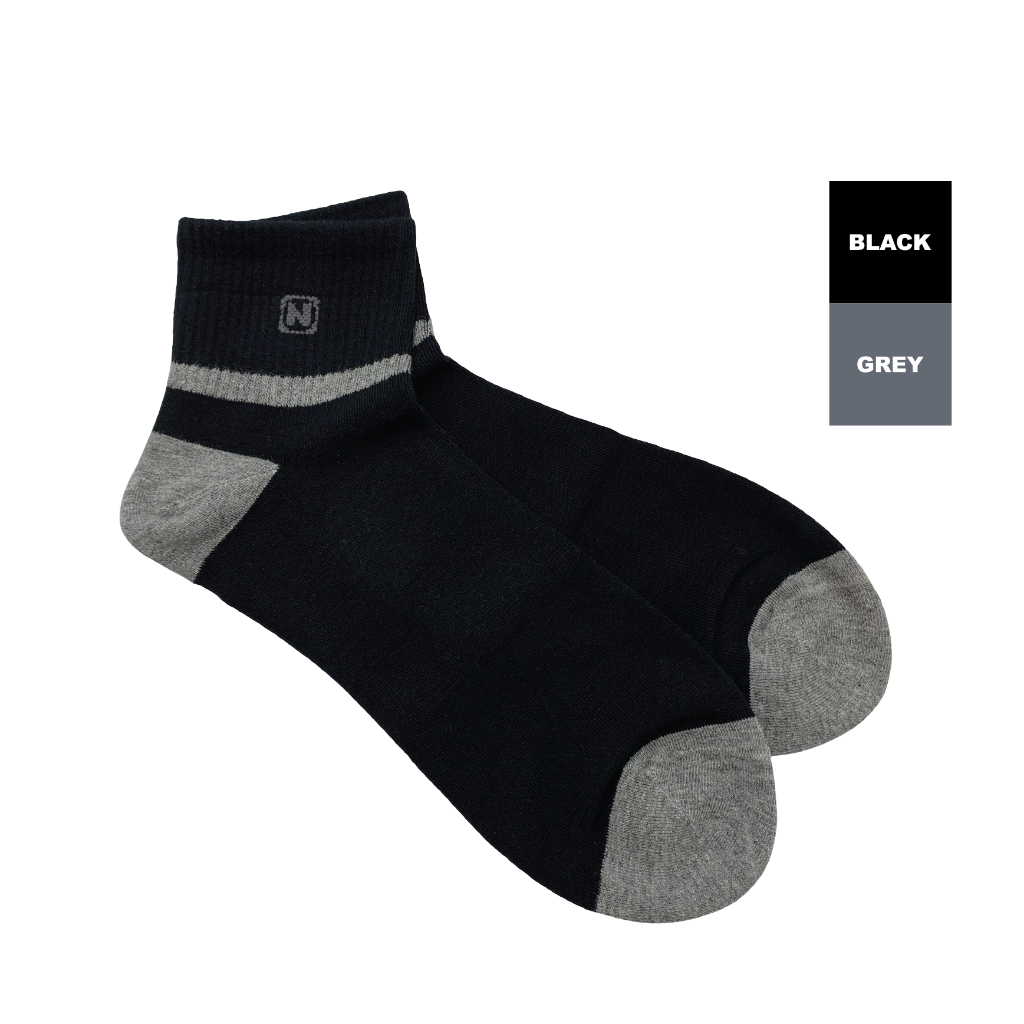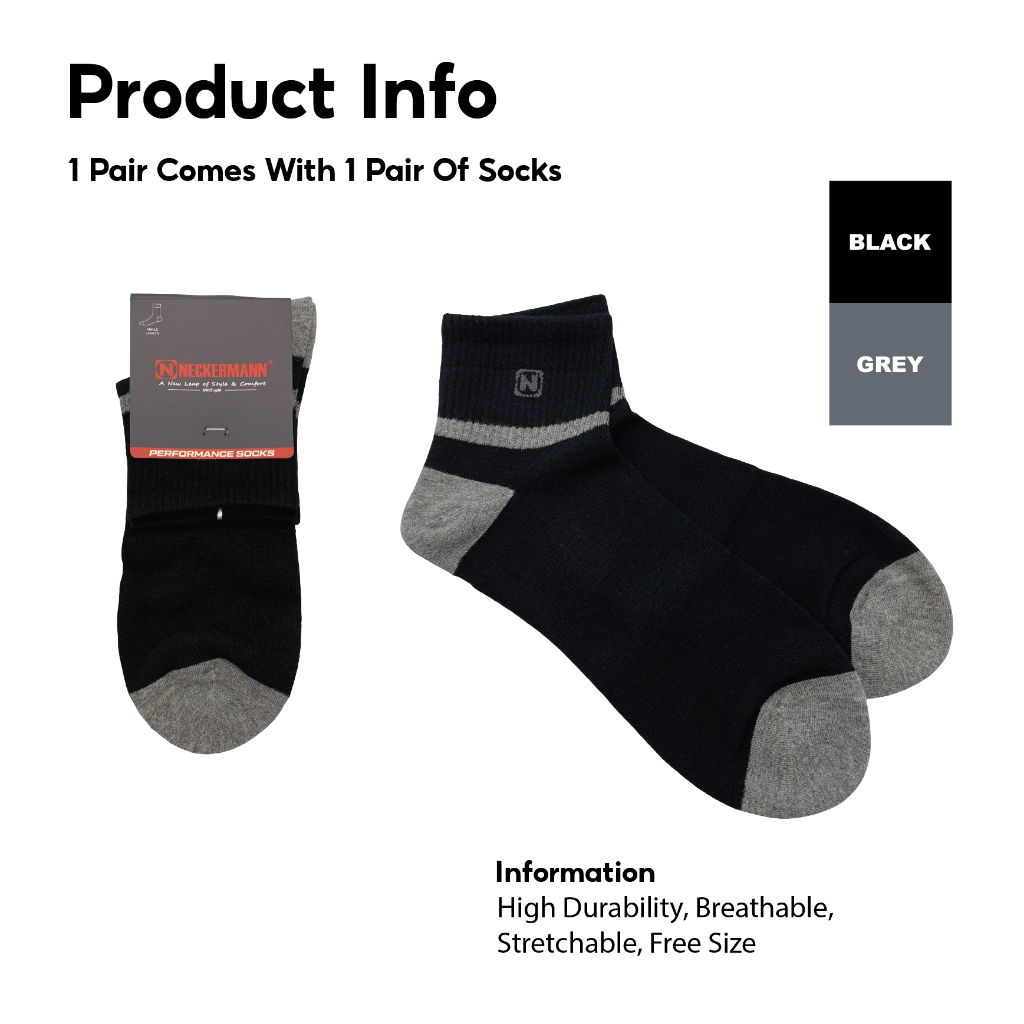 Neckermann Cotton Unisex Ankle Socks Free Size (UK6-UK12)-Black /Stoking Kerja/Outdoor/Pelajar/Hitam
