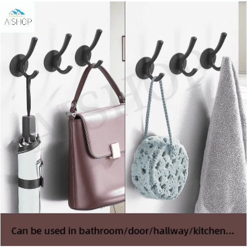 [SG Seller]Self-adhesive Wall Hook Clothes Bag Hanger Hook for Bathroom Coat Towel Rustproof Keys Hanger Bath Accessorie