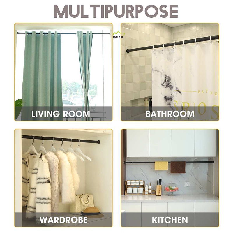 Idelafe Punch Free Extendable Rod Multifuction Adjustable Extendable Rod Aluminum Shower Curtain Telescopic Rods Clothes Hanger Bathroom Rail