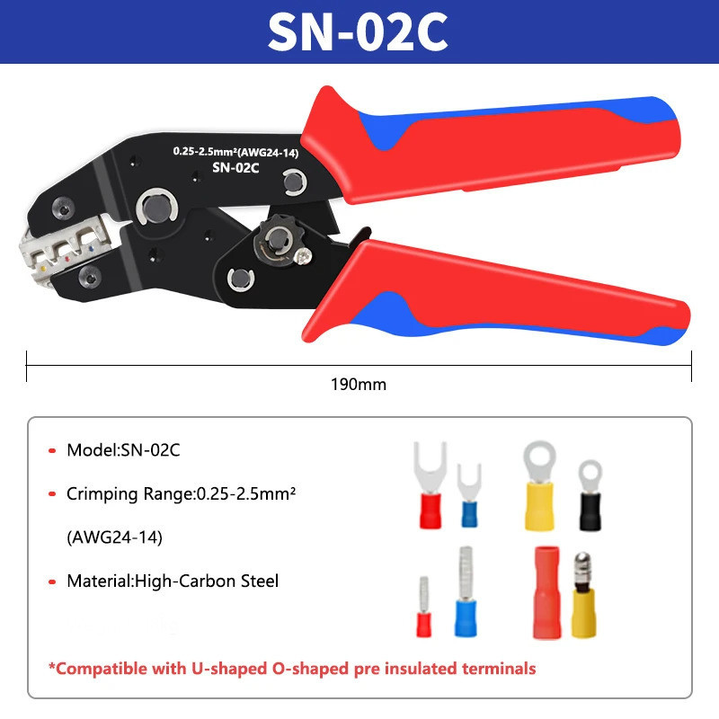 Manual crimping tool, 0.25-2.5mm ² adjustable pliers, 280 pcs, insulated cable terminal matching kit, SN-02C wire crimping kit