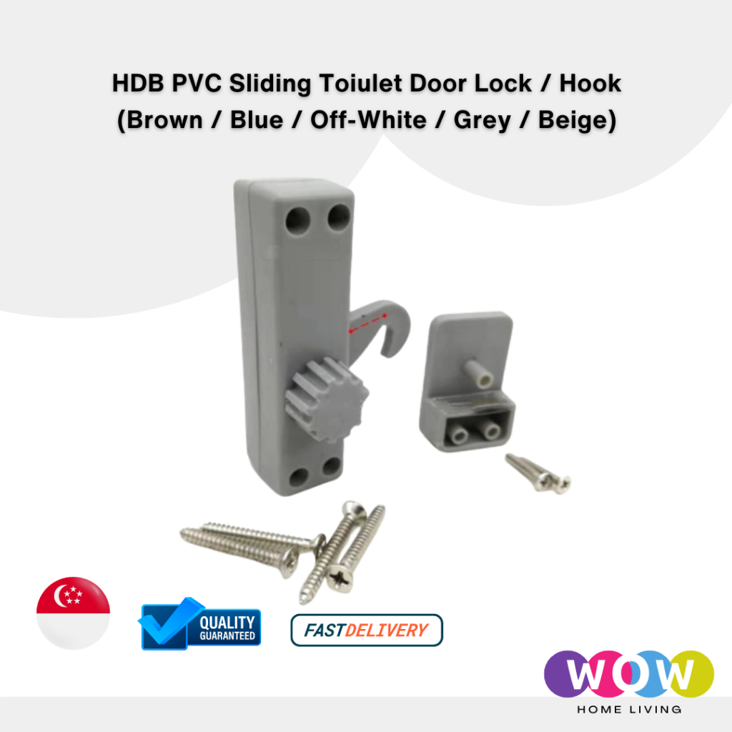 HDB PVC Sliding Toilet Door Lock / Hook Brown / Blue / Off White / Grey / Beige