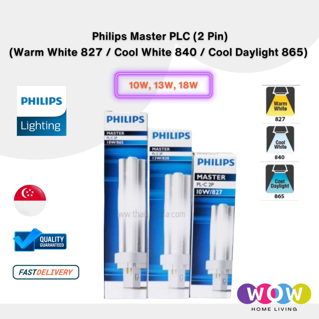 Philips Master PLC / 2 Pin 10W / 13W /18W/26W In ( Warmwhite 827 / Coolwhite 840 / Cooldaylight 865 )