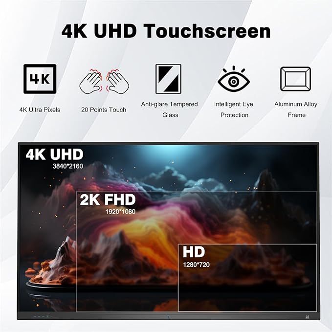 65"/75"/85" Inch Smart Board,4K Touch Screen Interactive Whiteboard, All-in-One Smart Digital Whiteboard