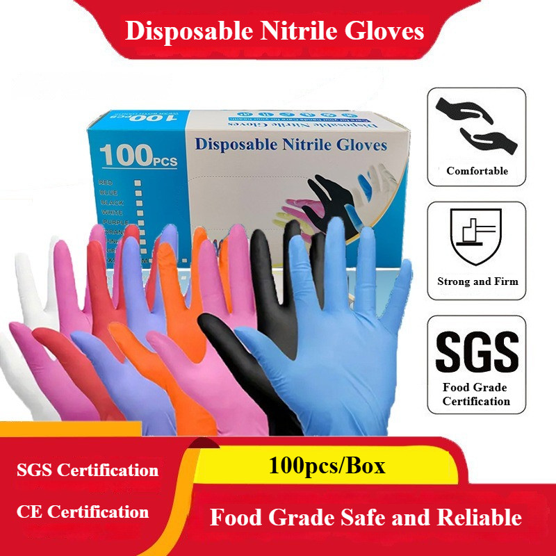 【SG Ready Stock】100pcs/box Disposable Nitrile Gloves - Food Grade Thick Powder-Free for Kitchen/Cleaning