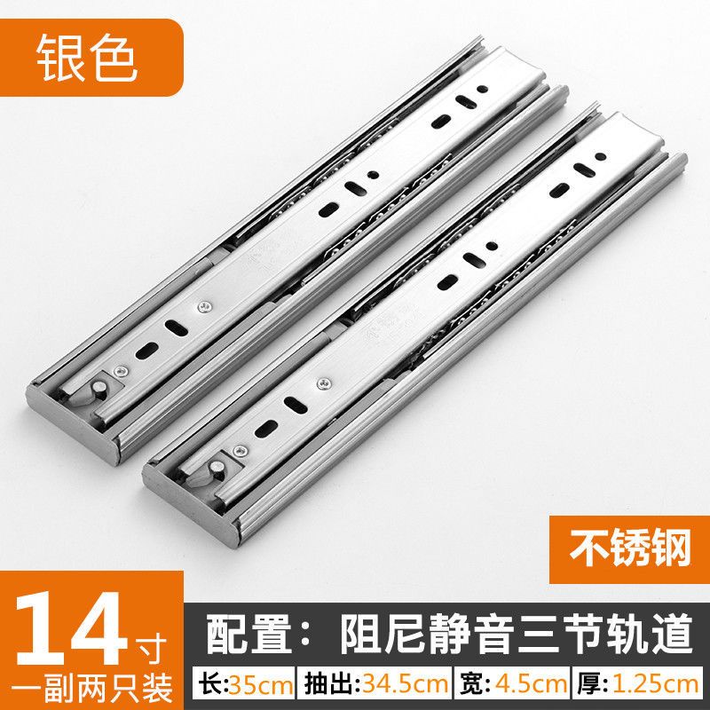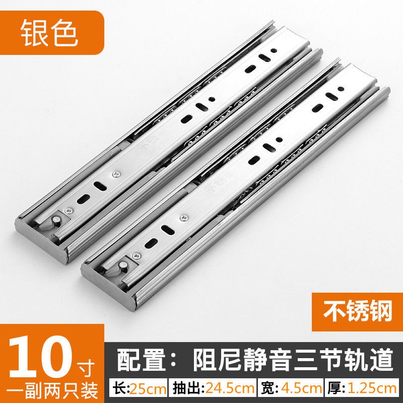 Stainless Steel Drawer Track Slide Rail 200mm Damping Three-Section Mute Ball Buffer Ultra-Short 5-Inch 6-Inch 8-Inch Guide Rail/soft closing extension drawer slides / runners /