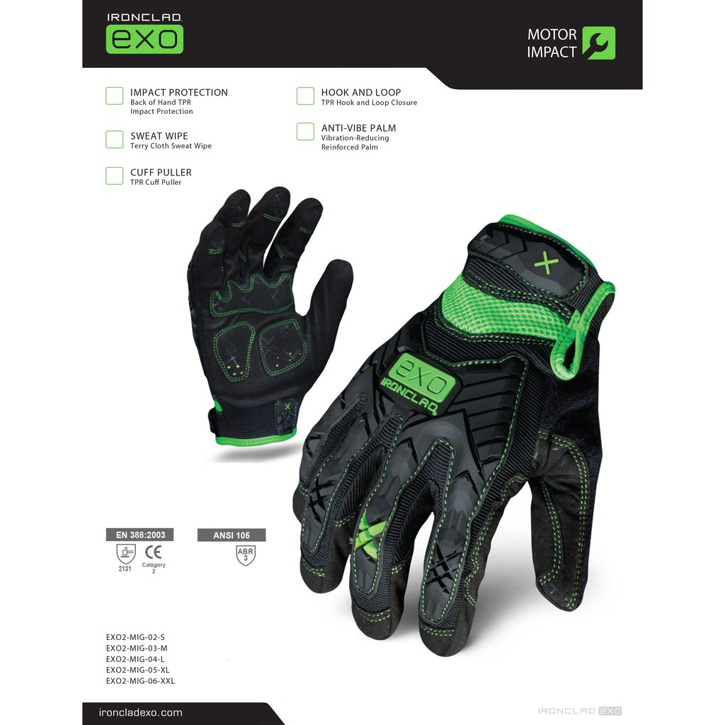 Ironclad, MIG, EXO™ IMPACT (BLACK) High Performance Impact Gloves