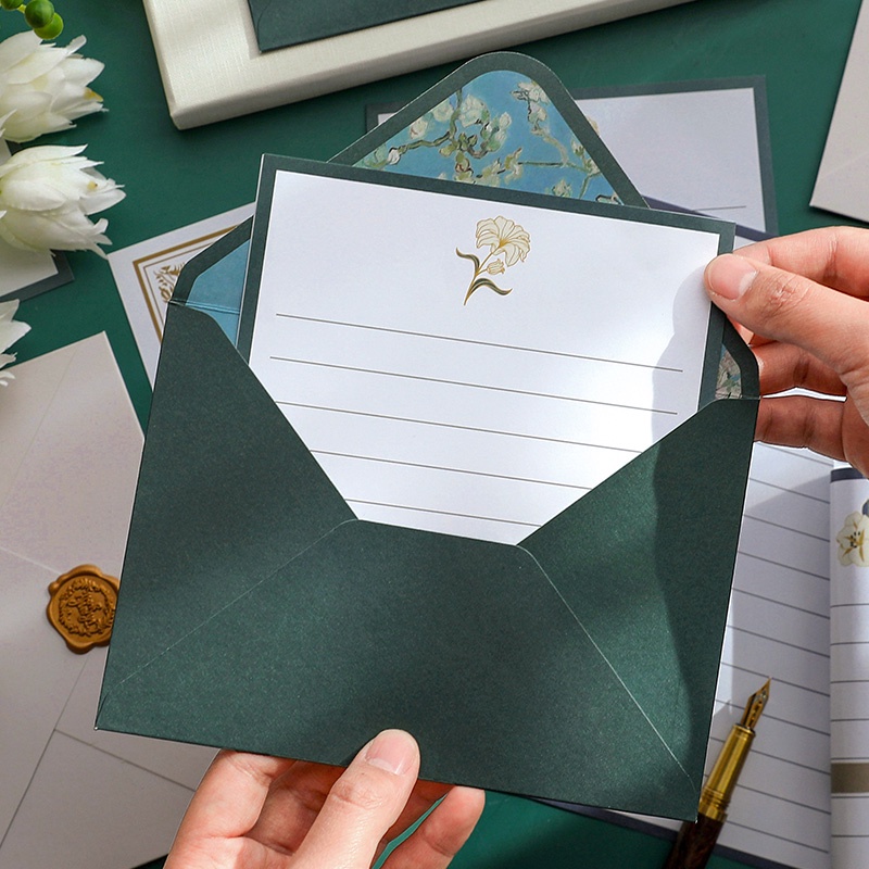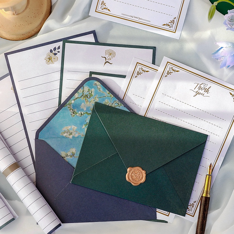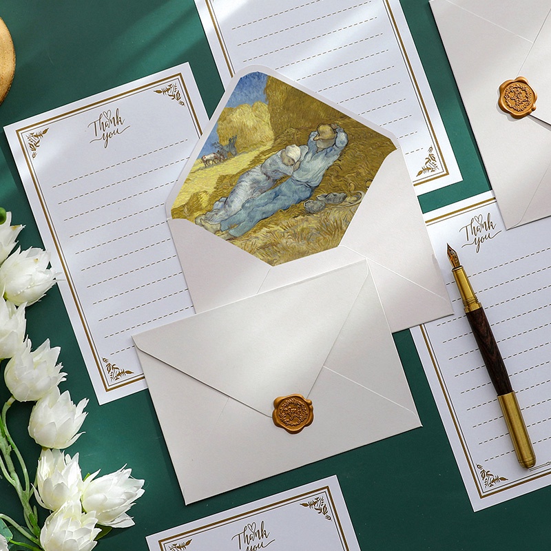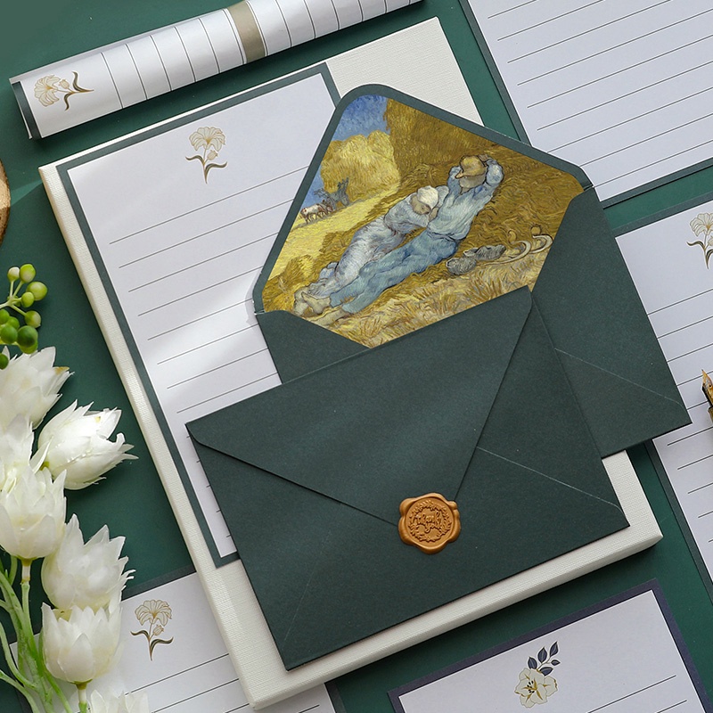 8 Sheets Vintage Oil Painting Series Envelope Letter Paper Set Large-Capacity Letterhead