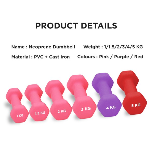 (JIJI.SG) Neoprene Dumbbell 1pc - Cast Iron / Dumbbell / Perfect Shape / Weight Available 1-5KG