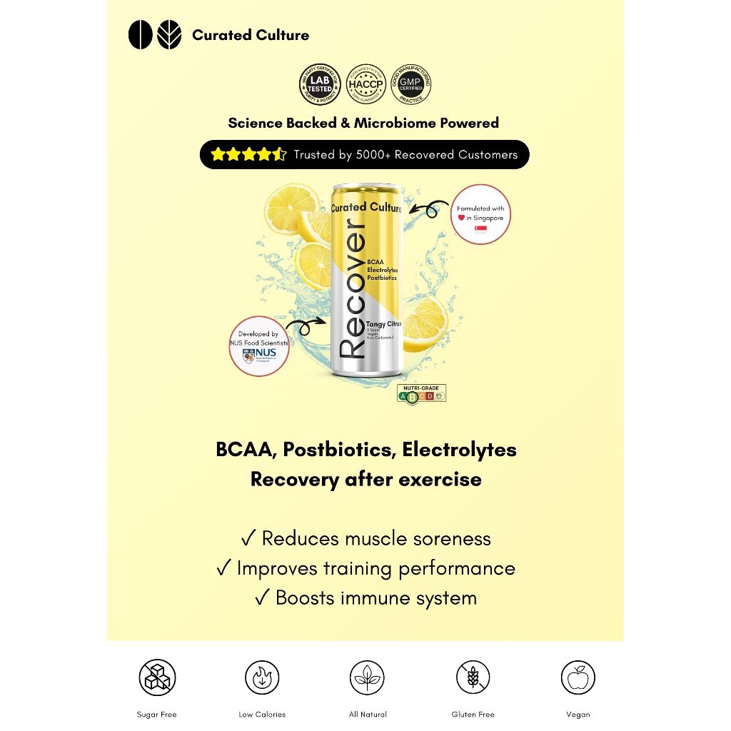 Curated Culture Recover Tangy Citrus 240ml x 24 | Sugar-Free | BCAA, Electrolytes & Postbiotics