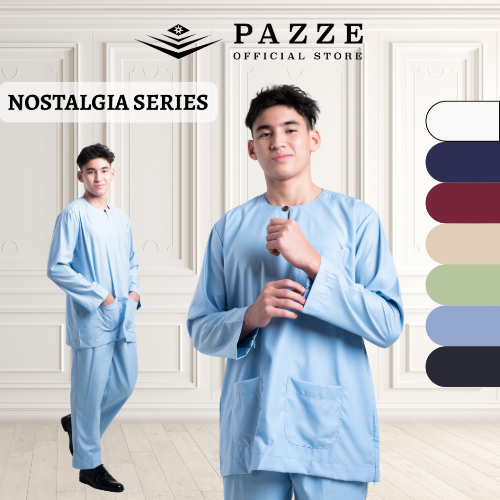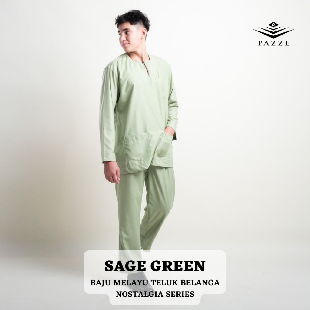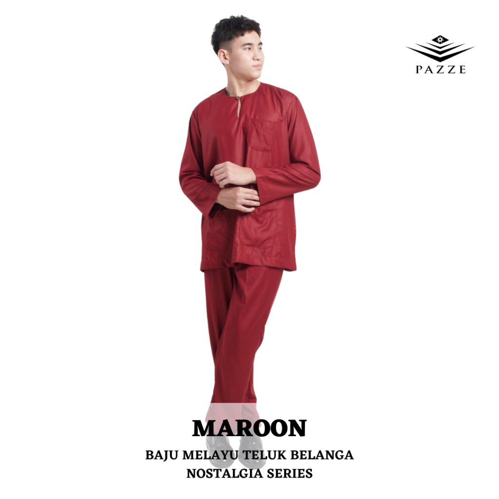 [NOSTALGIA SERIES]Pazze Baju Melayu Teluk Belanga Regular Fit-Off White Navy Blue Maroon Nude Sage Green Baby Blue Black Baju Melayu Lelaki Baju Melayu