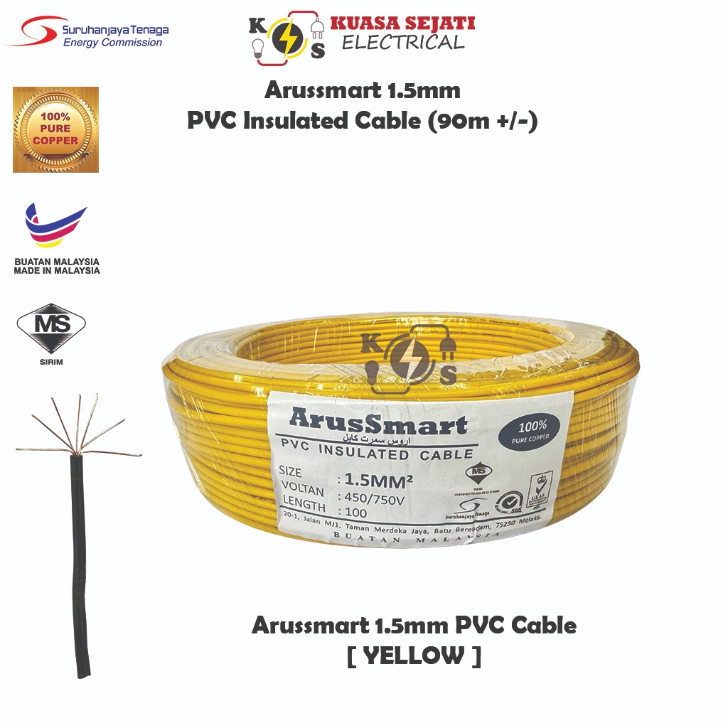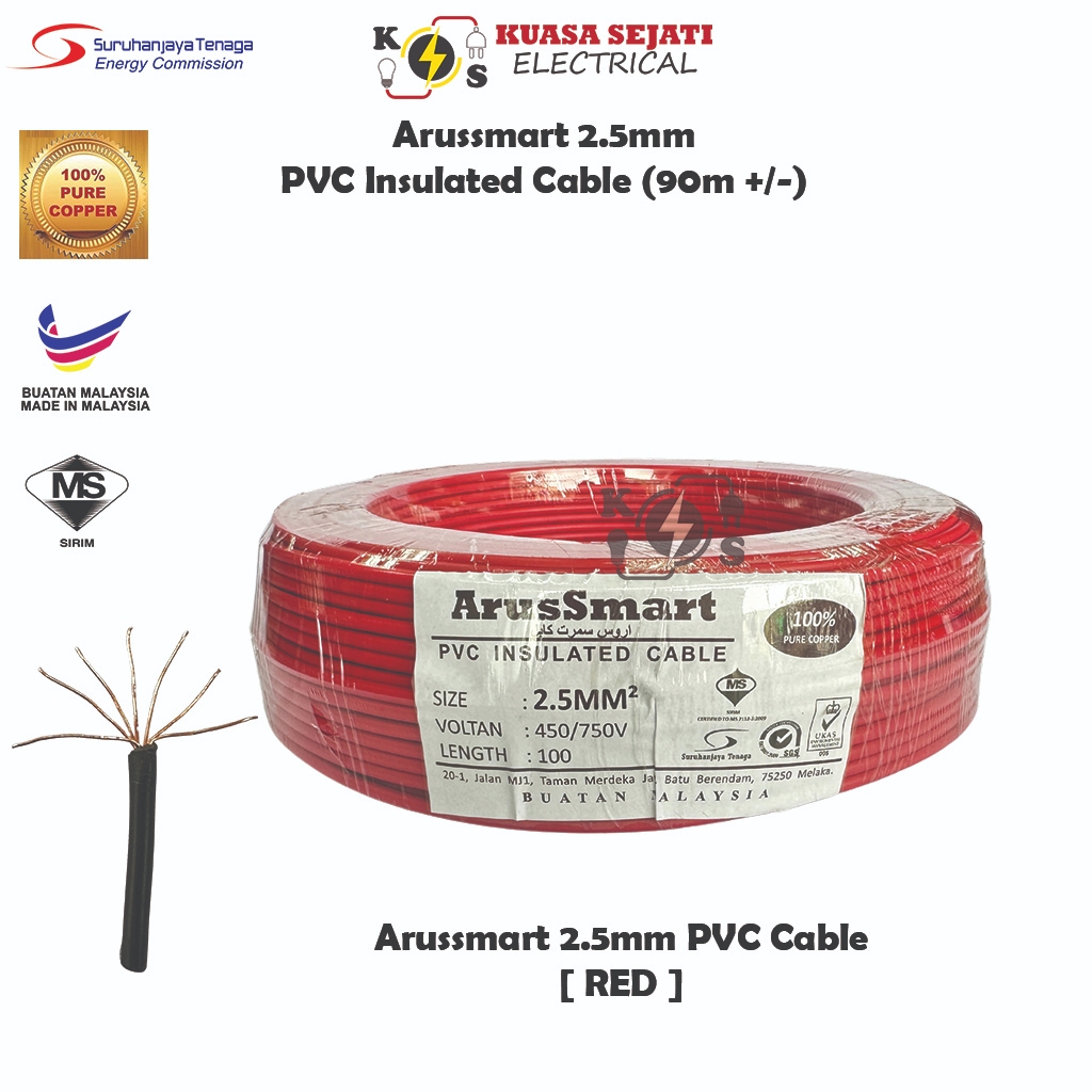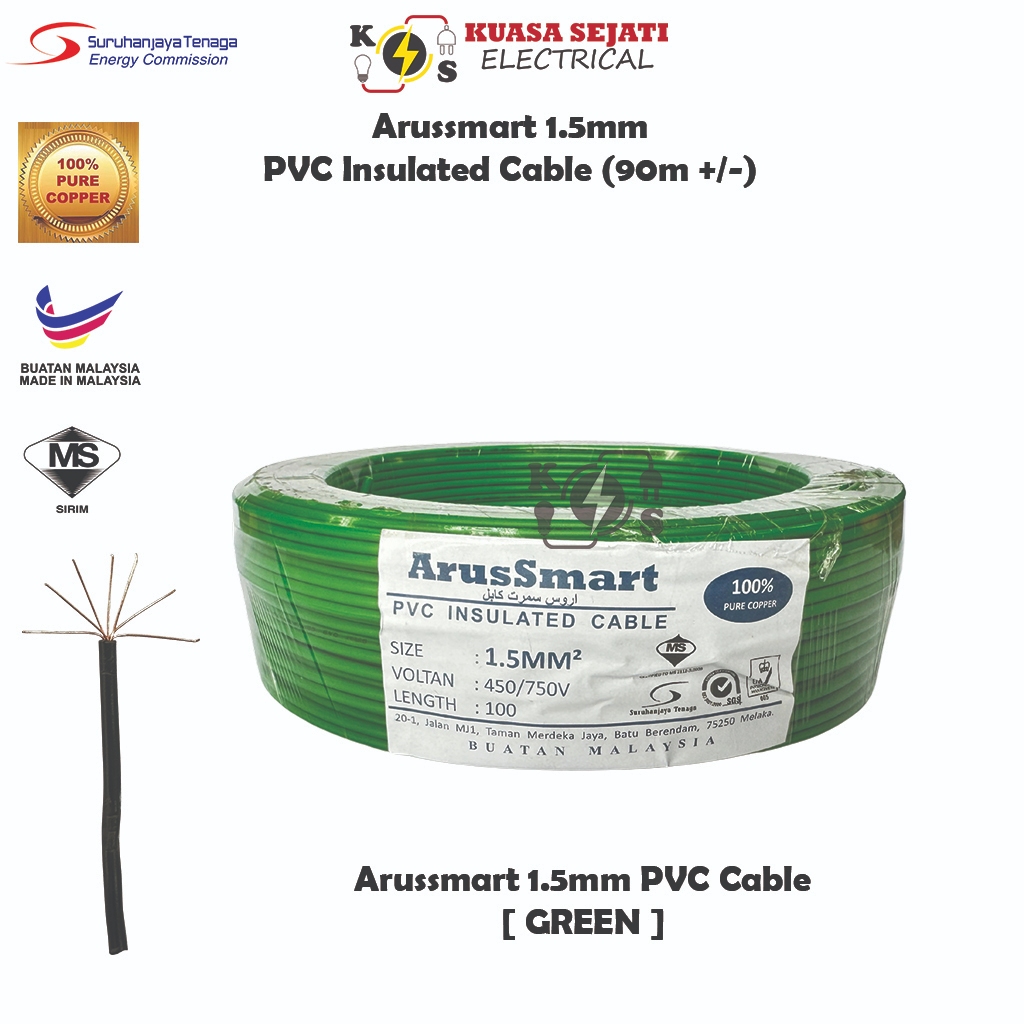 ARUSSMART 1.5mm / 2.5mm PVC Insulated Cable / Wiring Wire (SIRIM) - 100% Pure Copper
